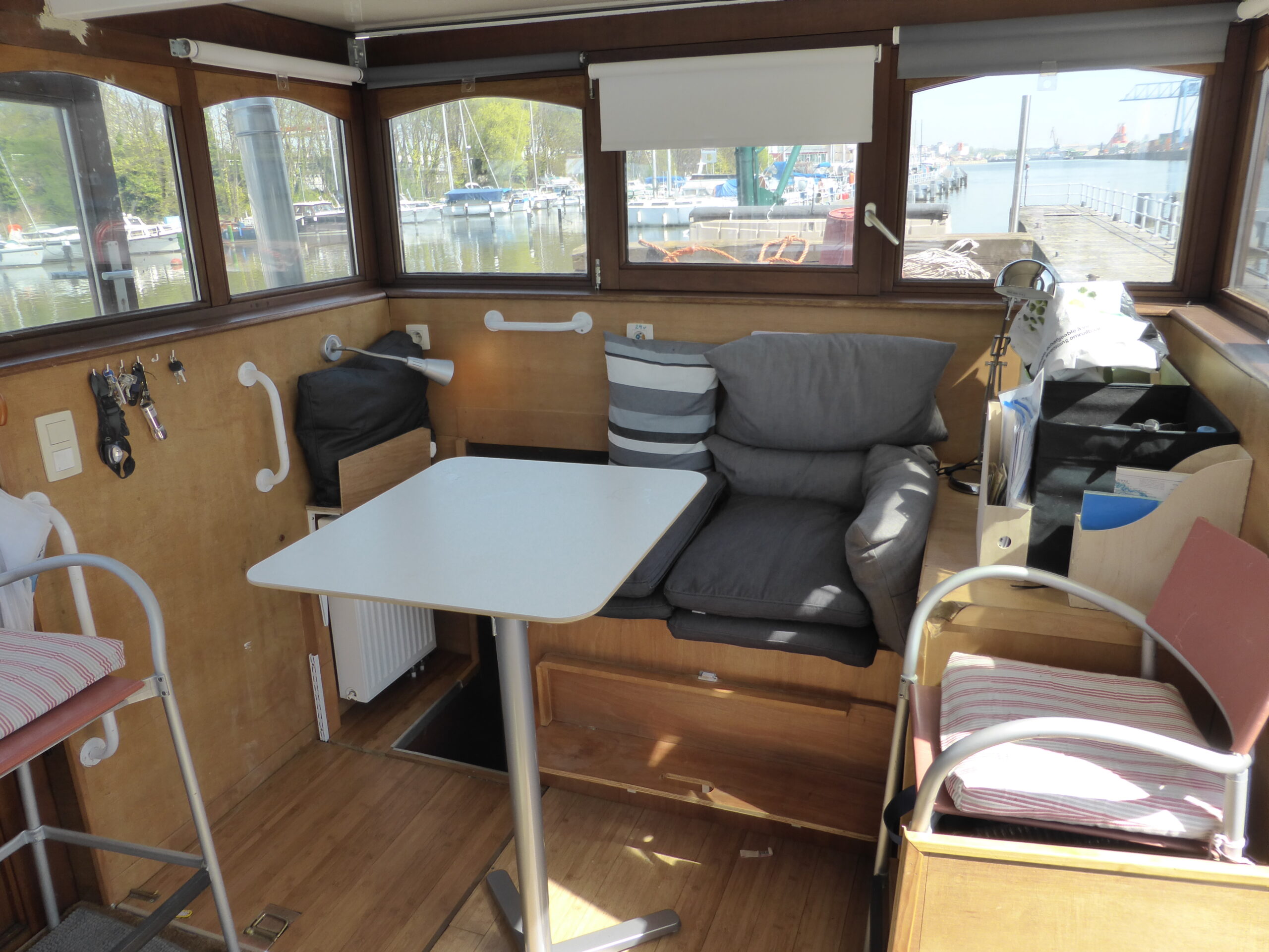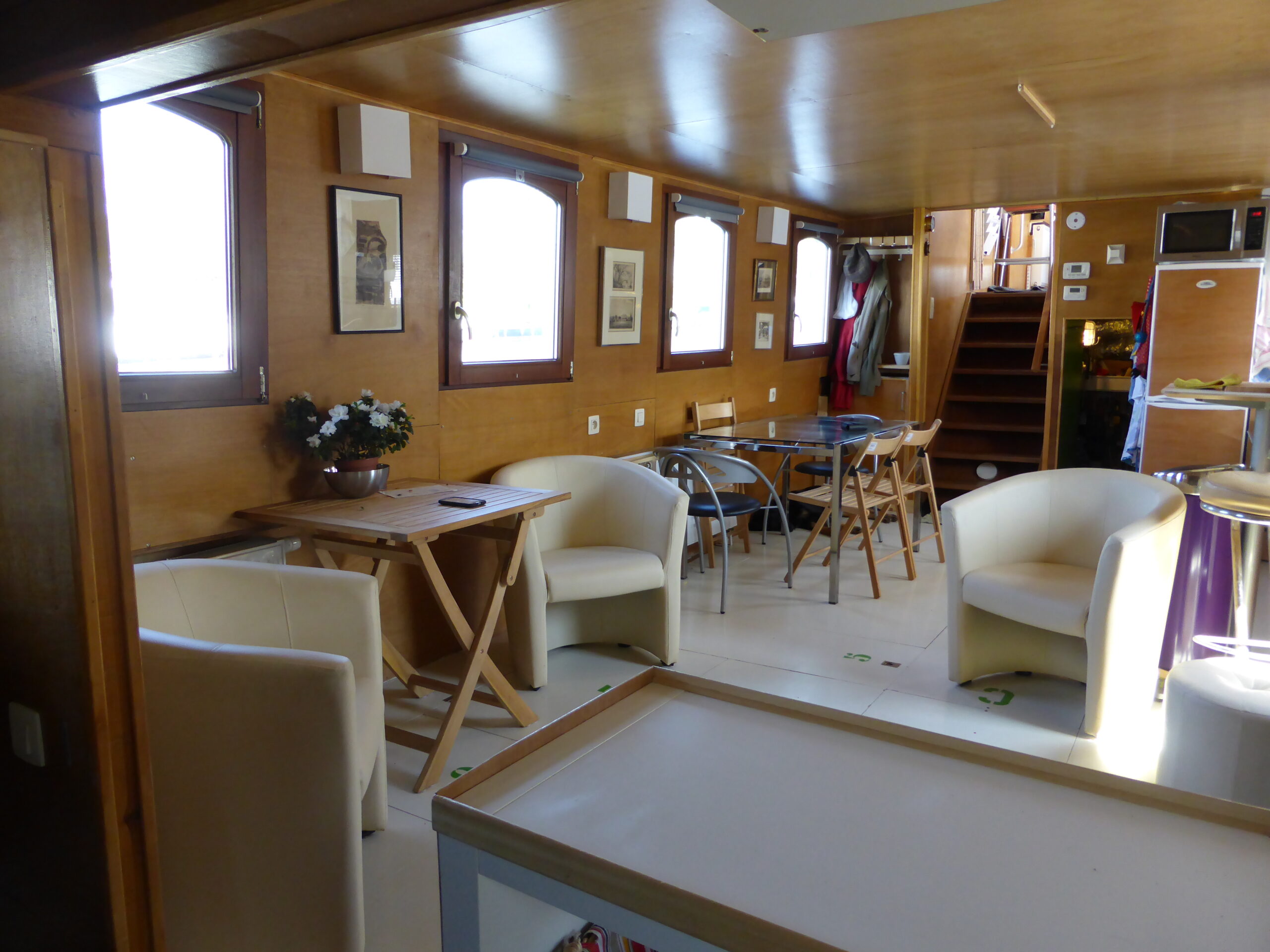Moreover, the 14 m² panoramic wheelhouse, fully glazed and air-conditioned, serves both as a pilothouse and as a bright, friendly living area. It offers a 360° view, perfect for moments of relaxation and conviviality. The wheelhouse is fitted with double-glazed, sun-protective safety glass and can be dismantled or lowered when needed. (However, its height remains too great to pass under the bridges of the Canal du Midi and the Canal du Nivernais.)