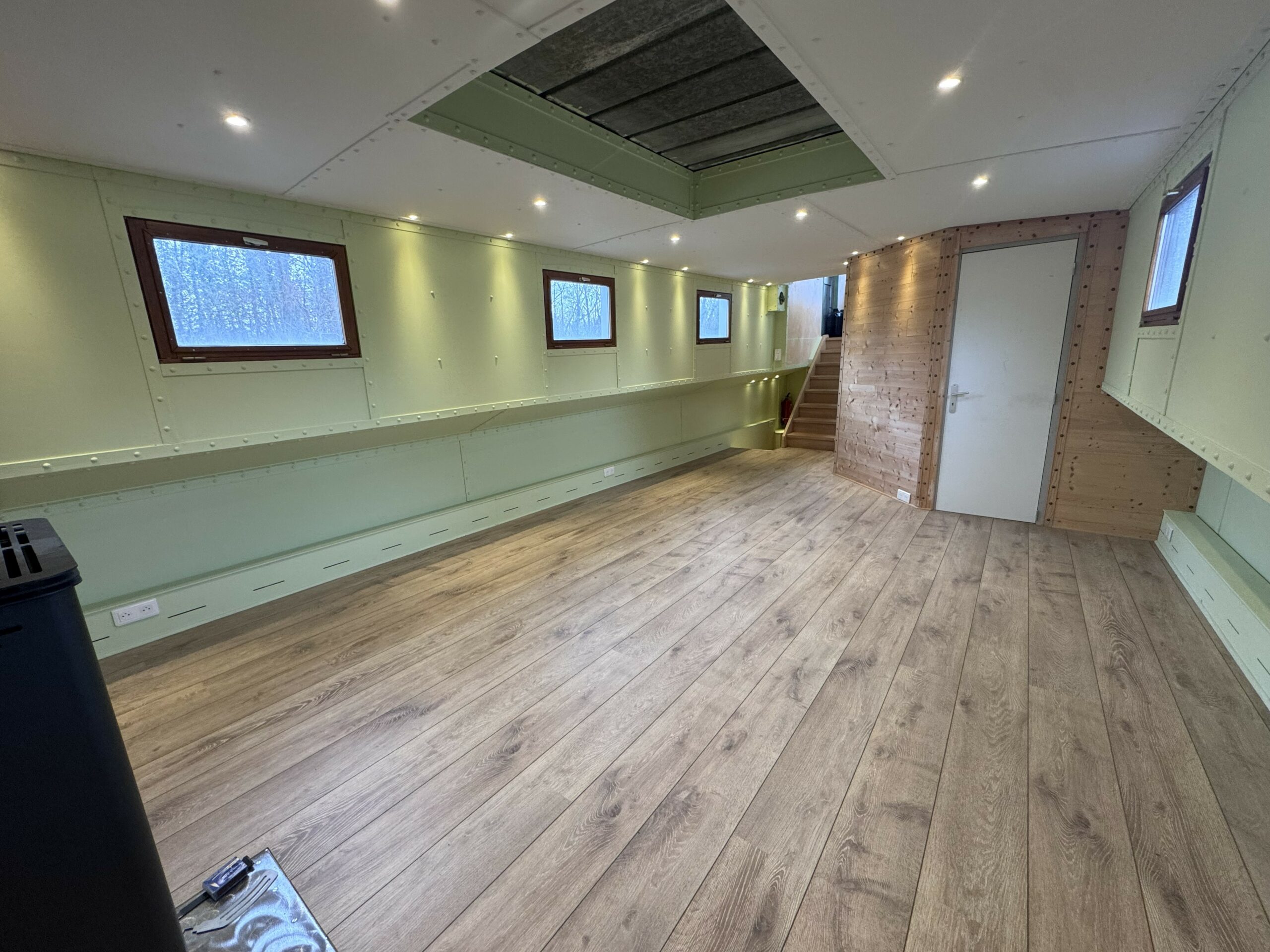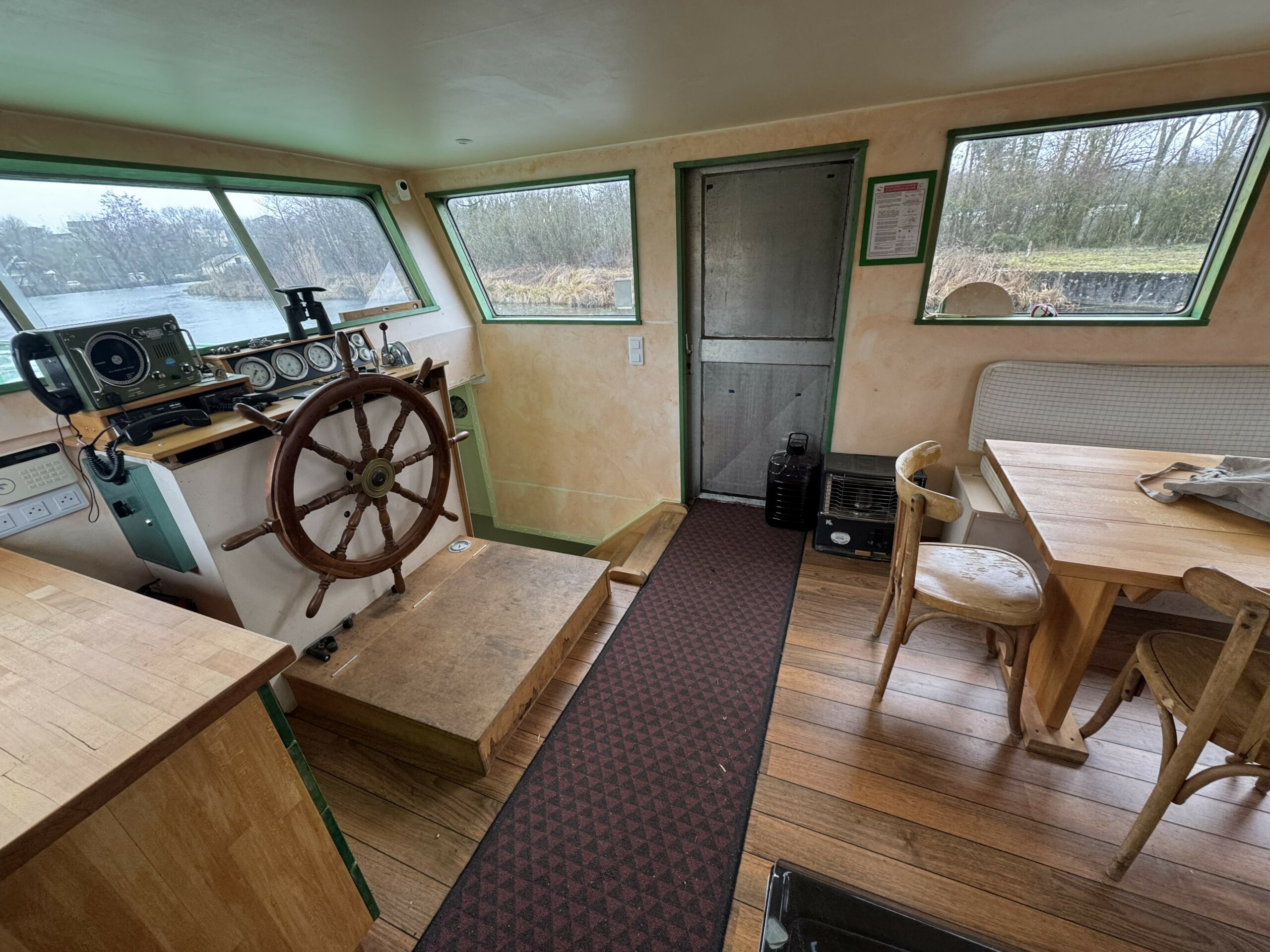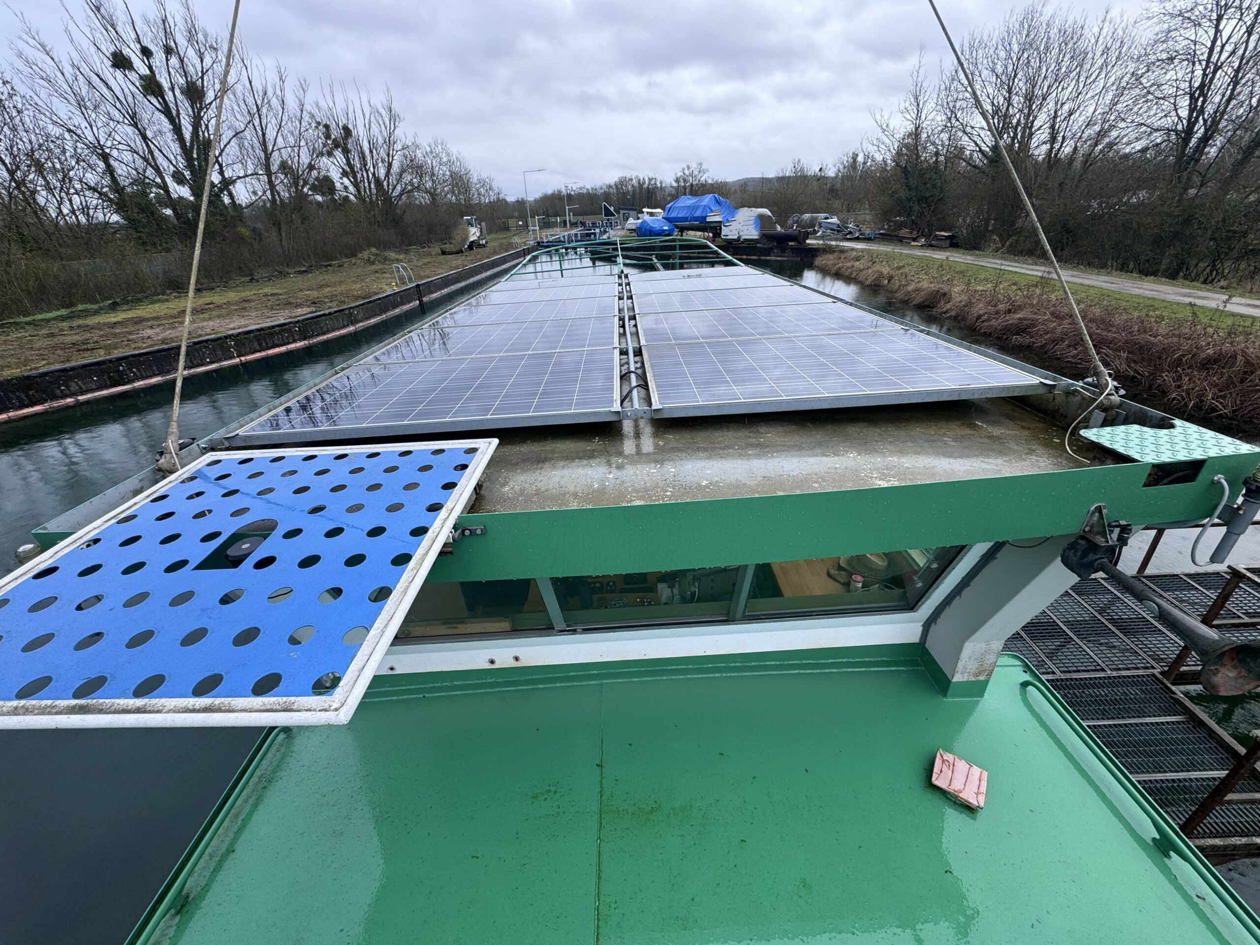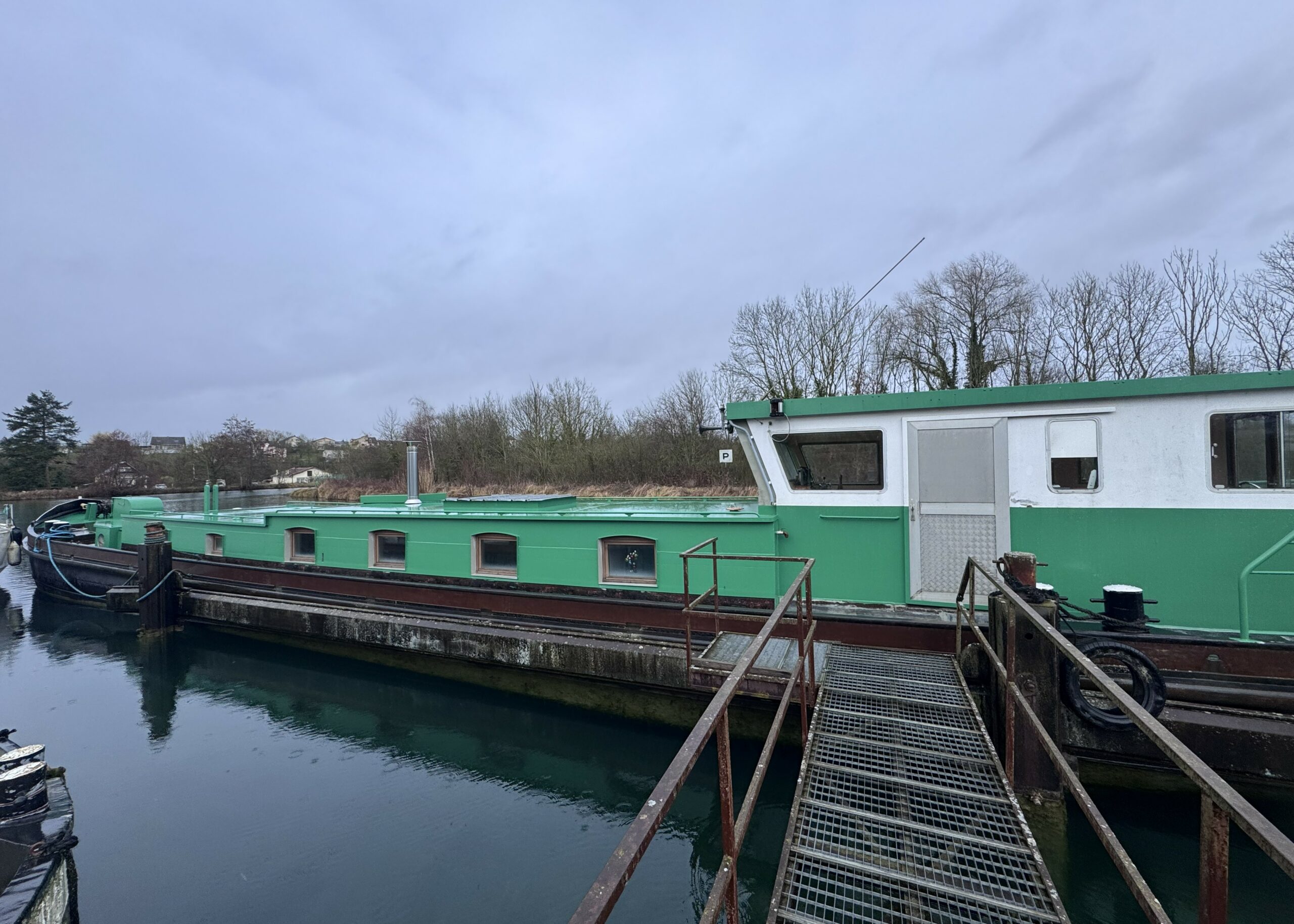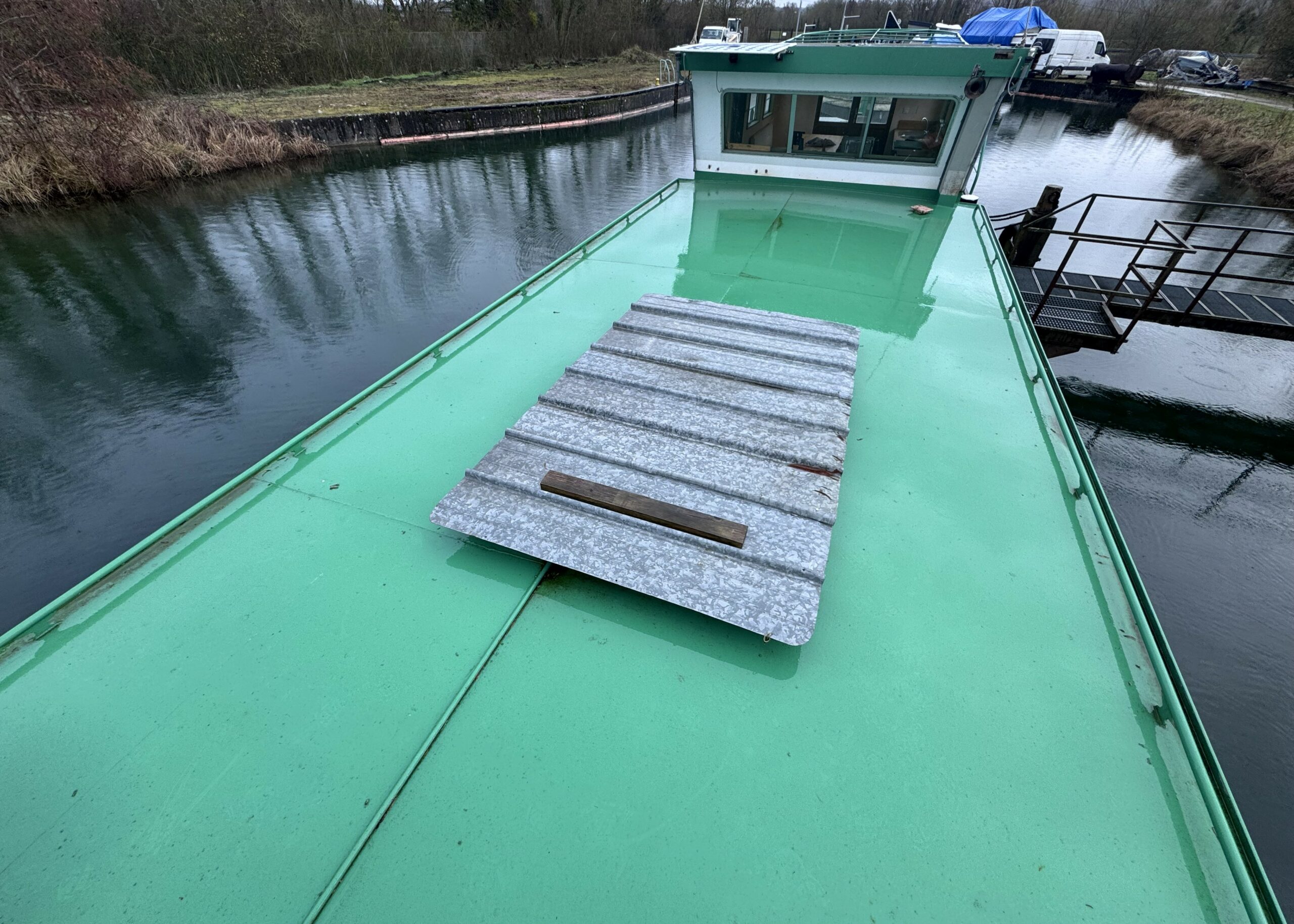 The wide gangways, spacious terrace and sturdy structure are testament to the quality of this boat’s construction. The hull was repainted green in early 2025. The Union Certificate, valid until 2032, authorises the 31-metre barge to sail in zones 3 and 4.