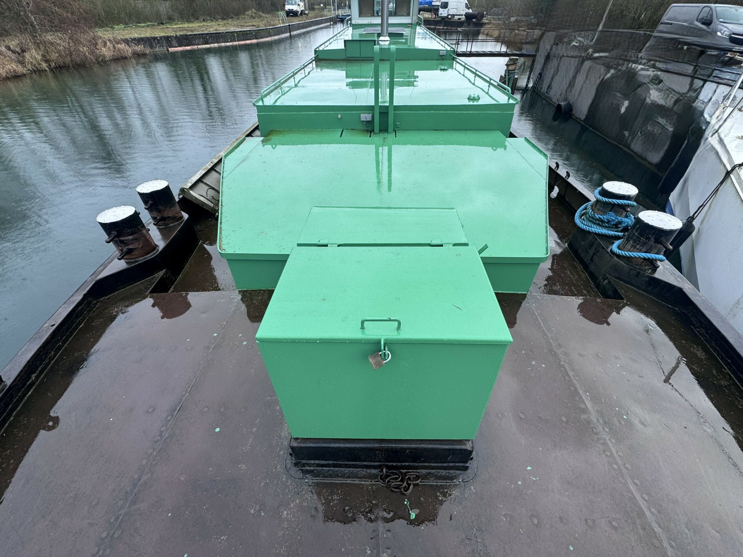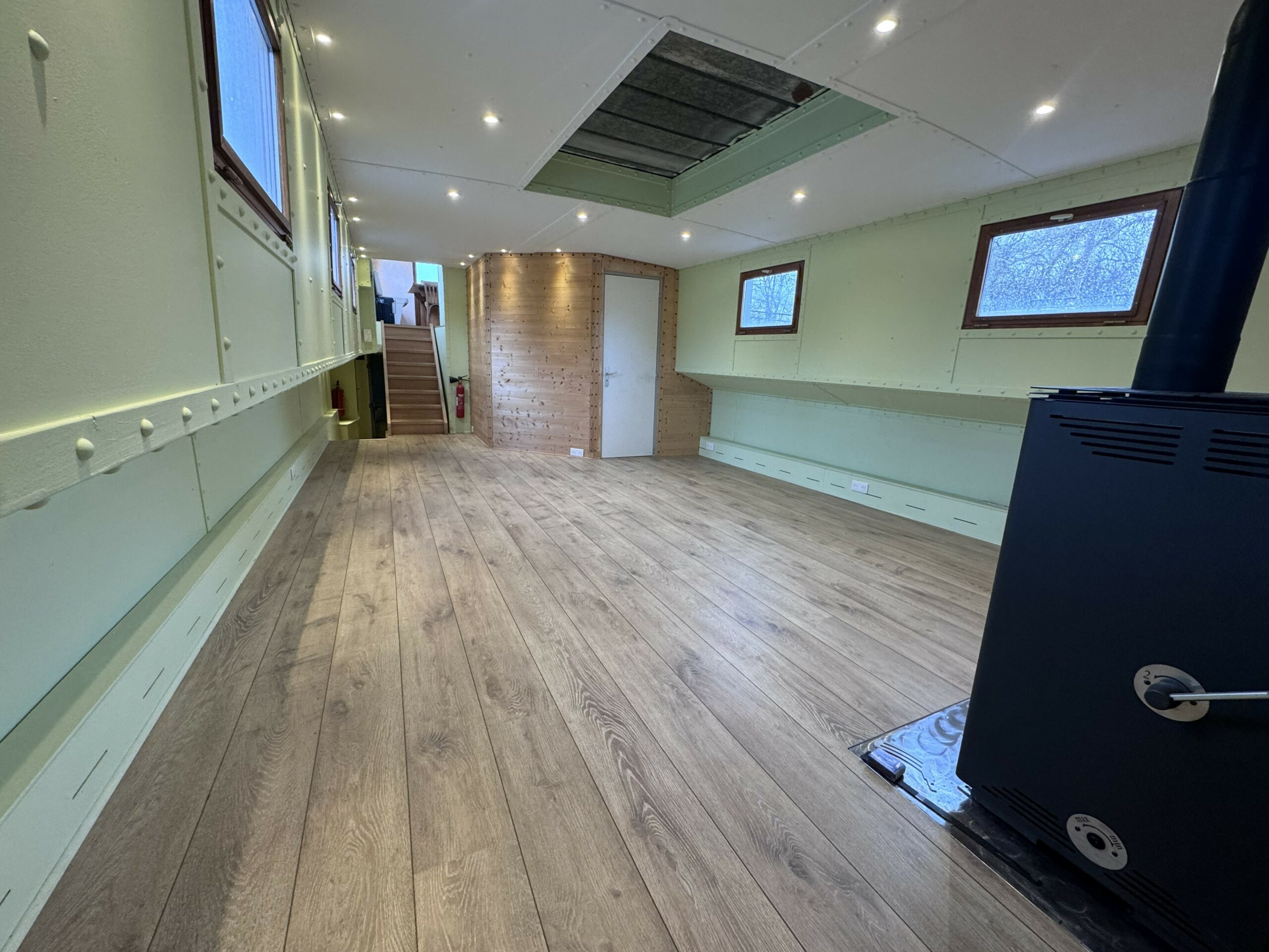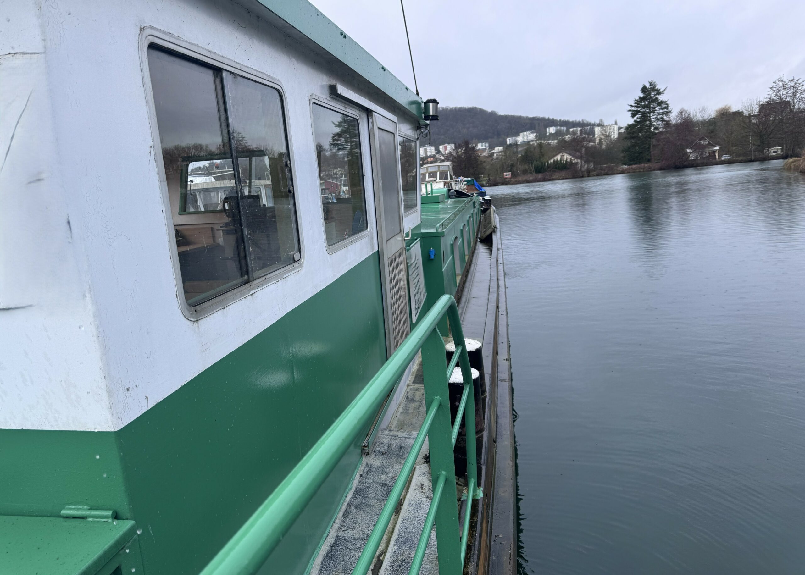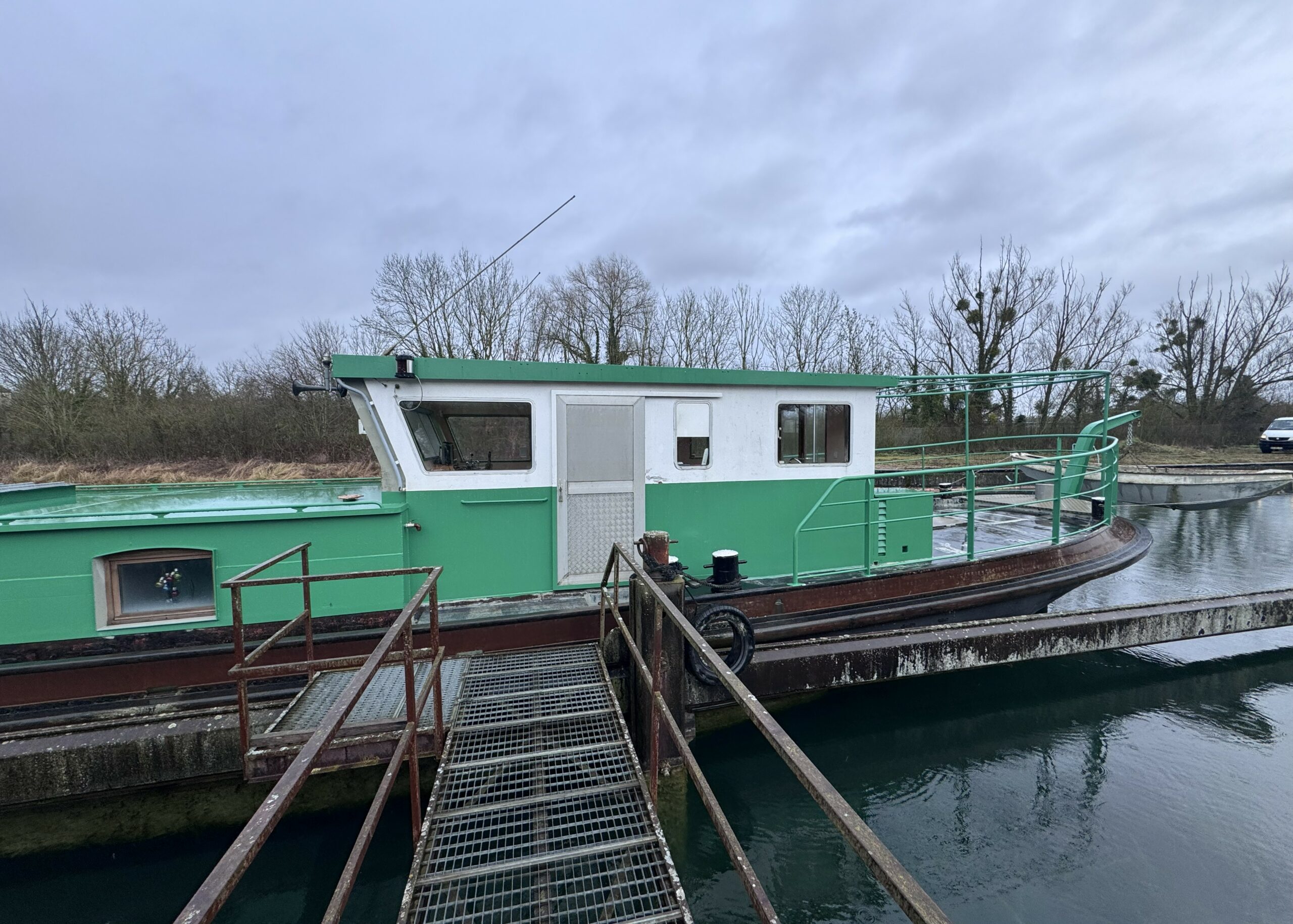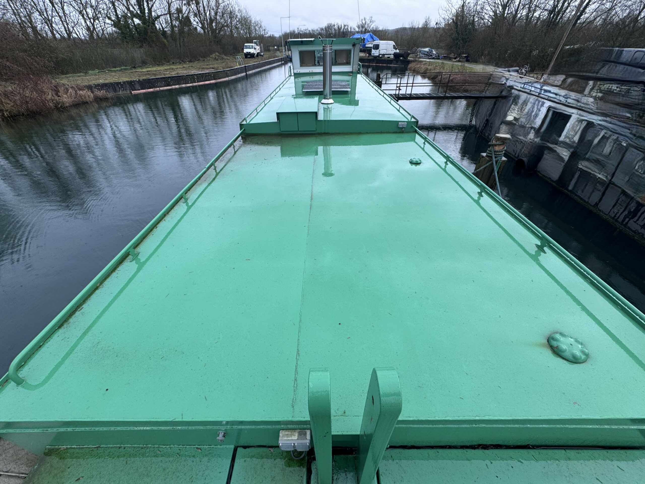 The wide gangways, spacious terrace and sturdy structure are testament to the quality of this boat’s construction. The hull was repainted green in early 2025. The Union Certificate, valid until 2032, authorises the 31-metre barge to sail in zones 3 and 4.