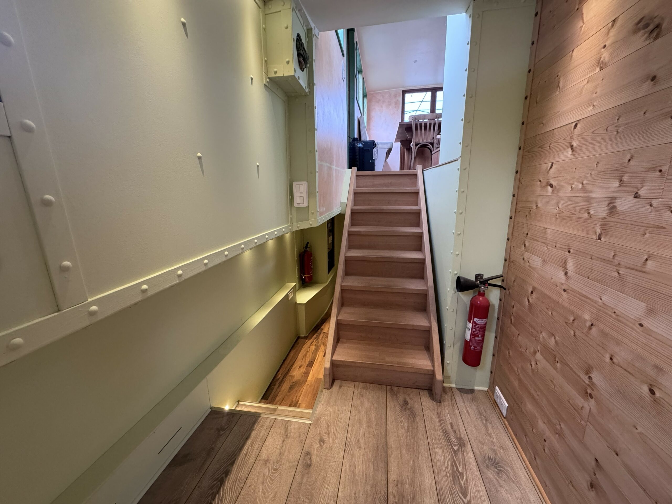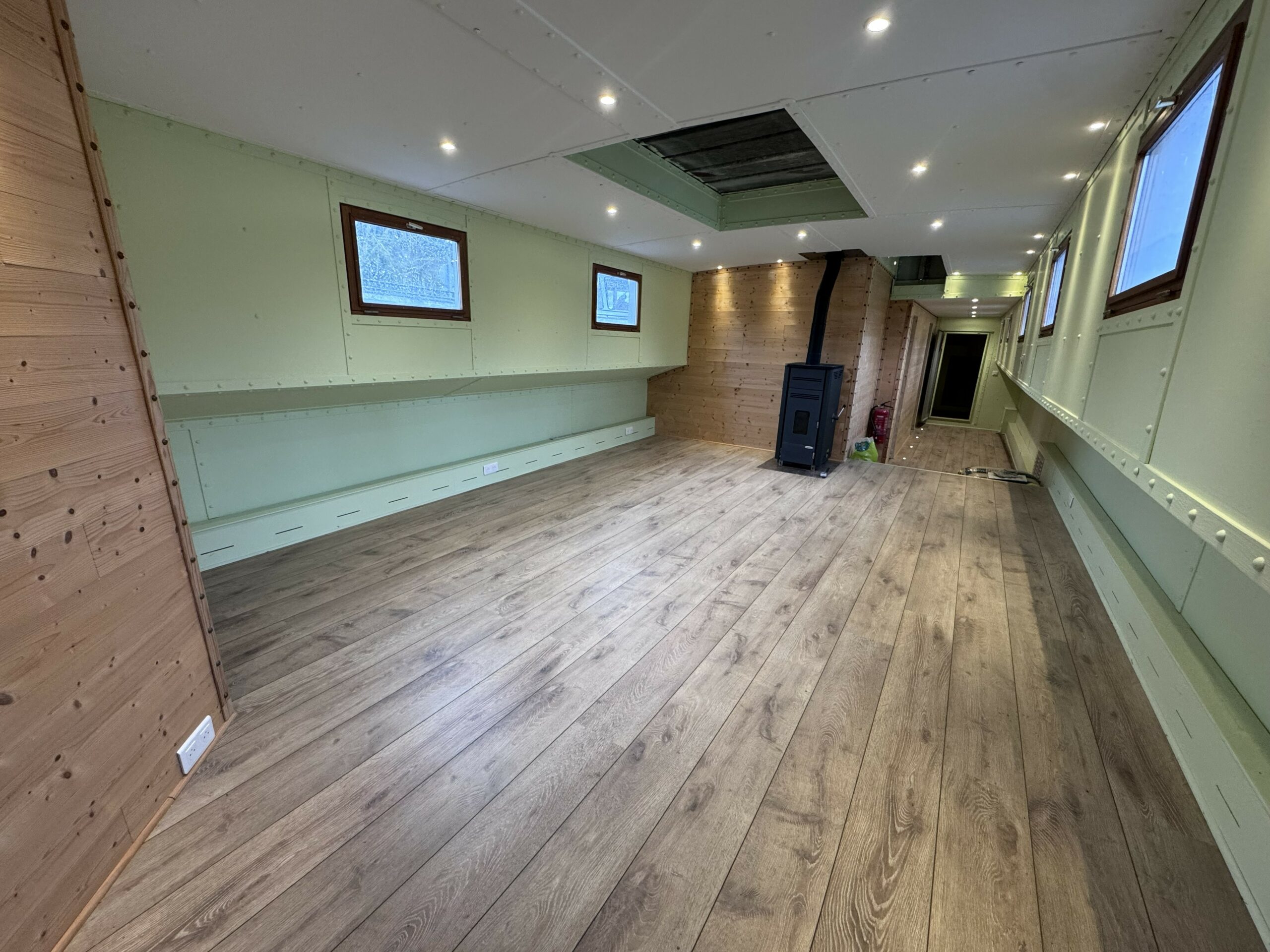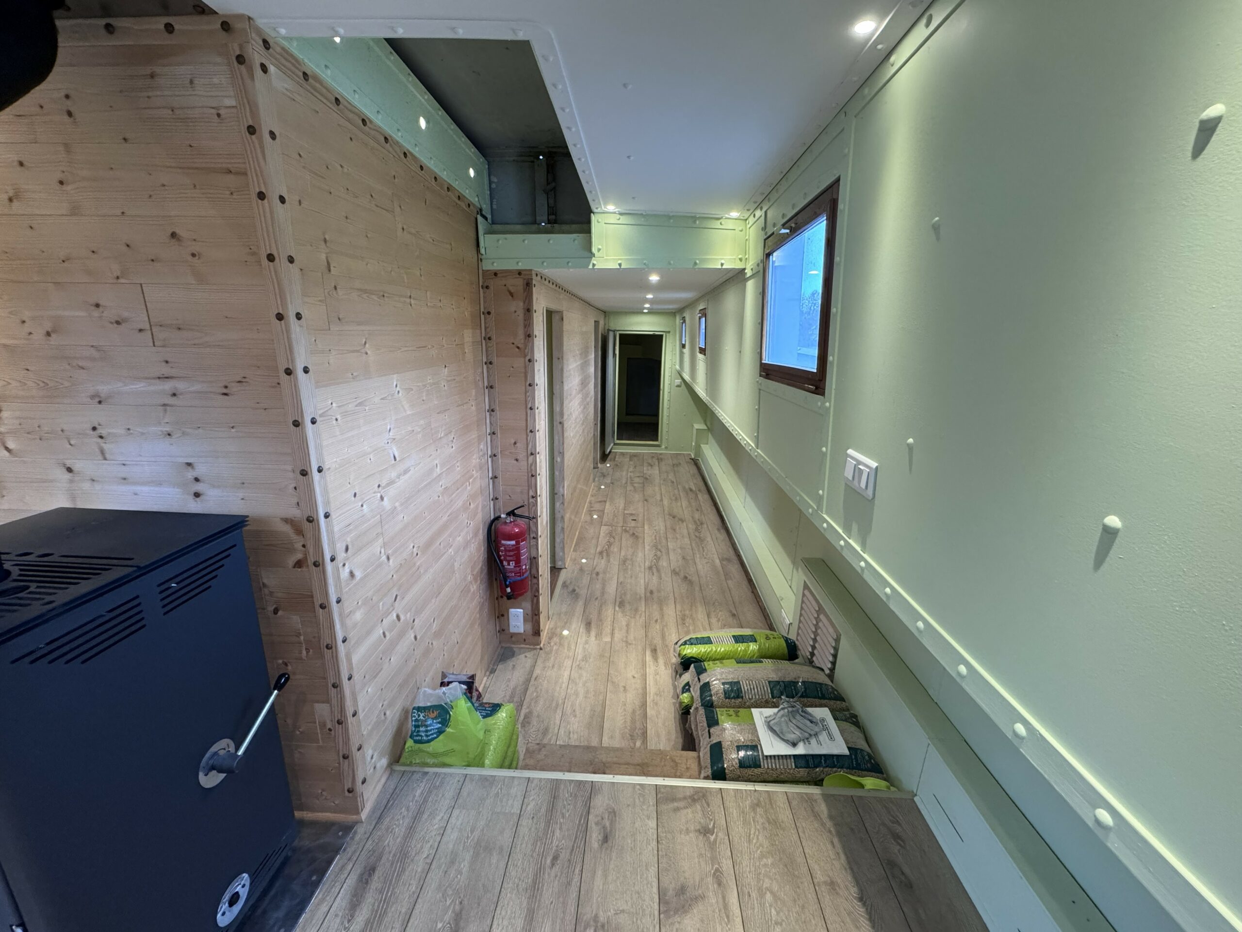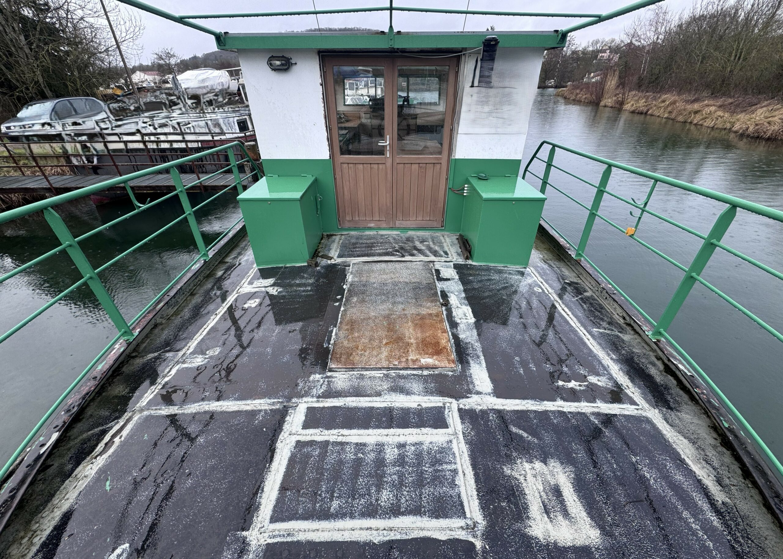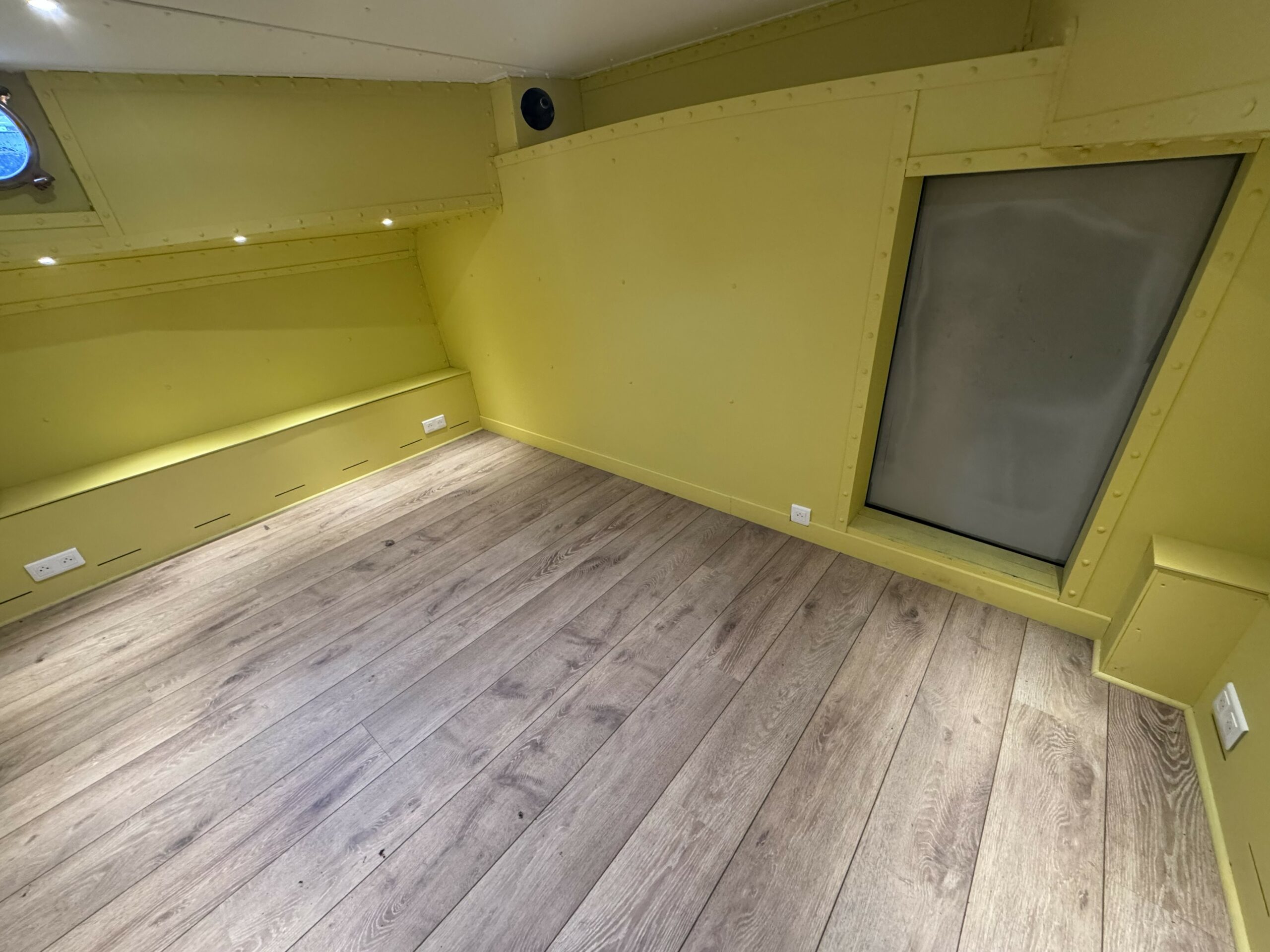 The wide gangways, spacious terrace and sturdy structure are testament to the quality of this boat’s construction. The hull was repainted green in early 2025. The Union Certificate, valid until 2032, authorises the 31-metre barge to sail in zones 3 and 4.