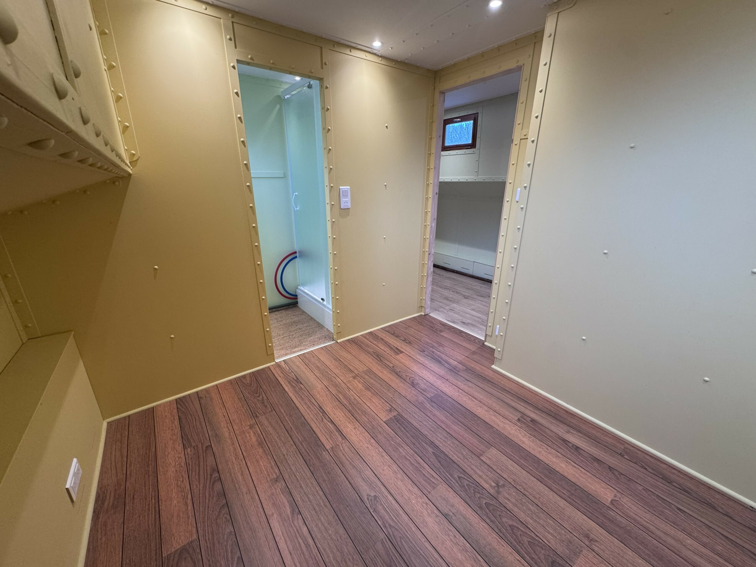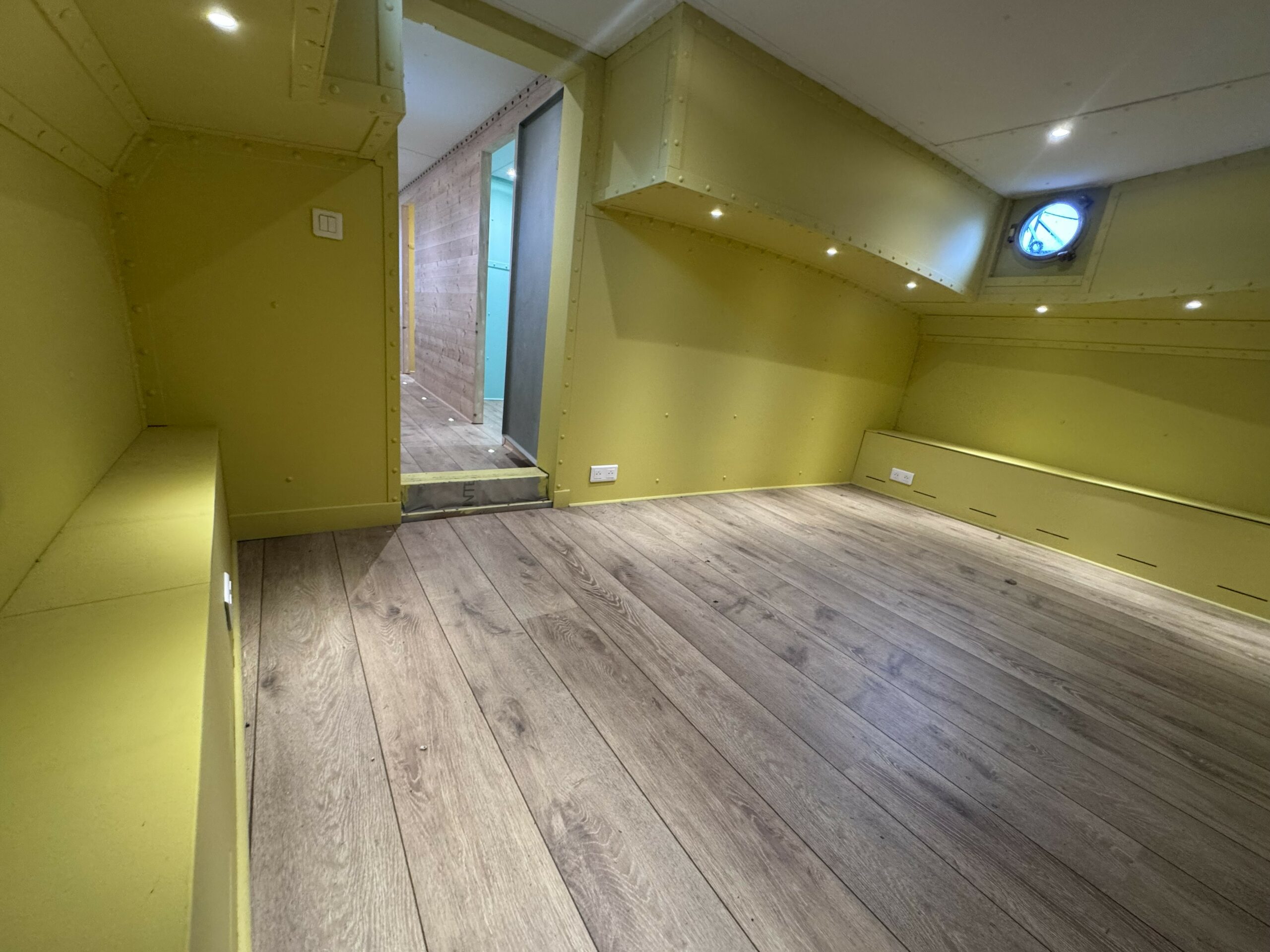 Descending the staircase on the starboard side, you arrive in a spacious, open-plan living area, offering endless possibilities for your interior design.