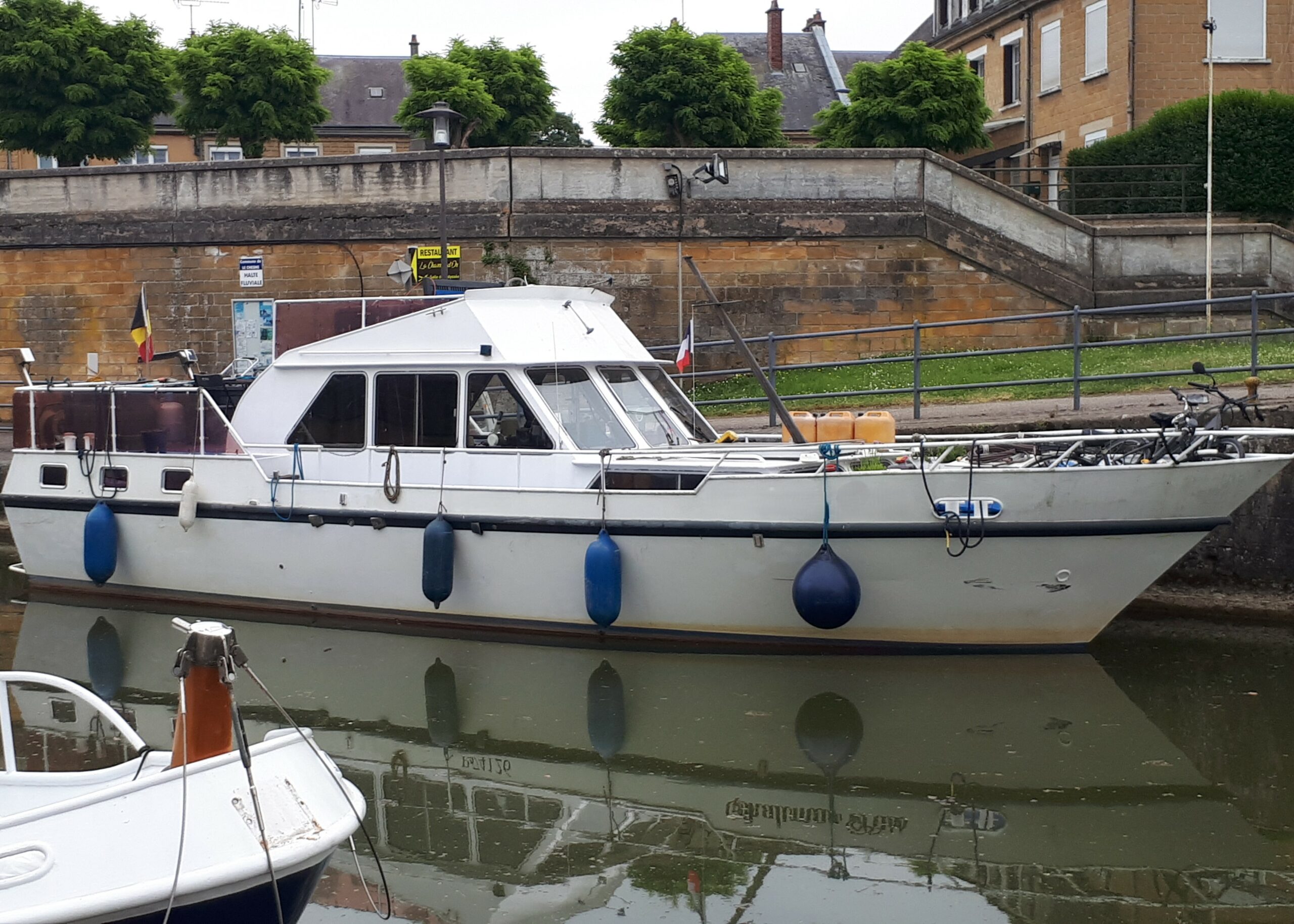 This elegant 1976 Dutch cruiser offers a simple, functional living space, ideal for quiet, relaxing cruising. You’ll find comfortable accommodation such as a spacious wheelhouse/lounge with steering position, comfortable bench seating and a modular table. The aft cabin has a double bed, cupboards and a WC. The galley has a sink, stove, fridge and dinette area. The shower is located just before the kitchen. There are also V-shaped front berths for one or two extra people. And the outside terrace lets you enjoy the beautiful scenery.
