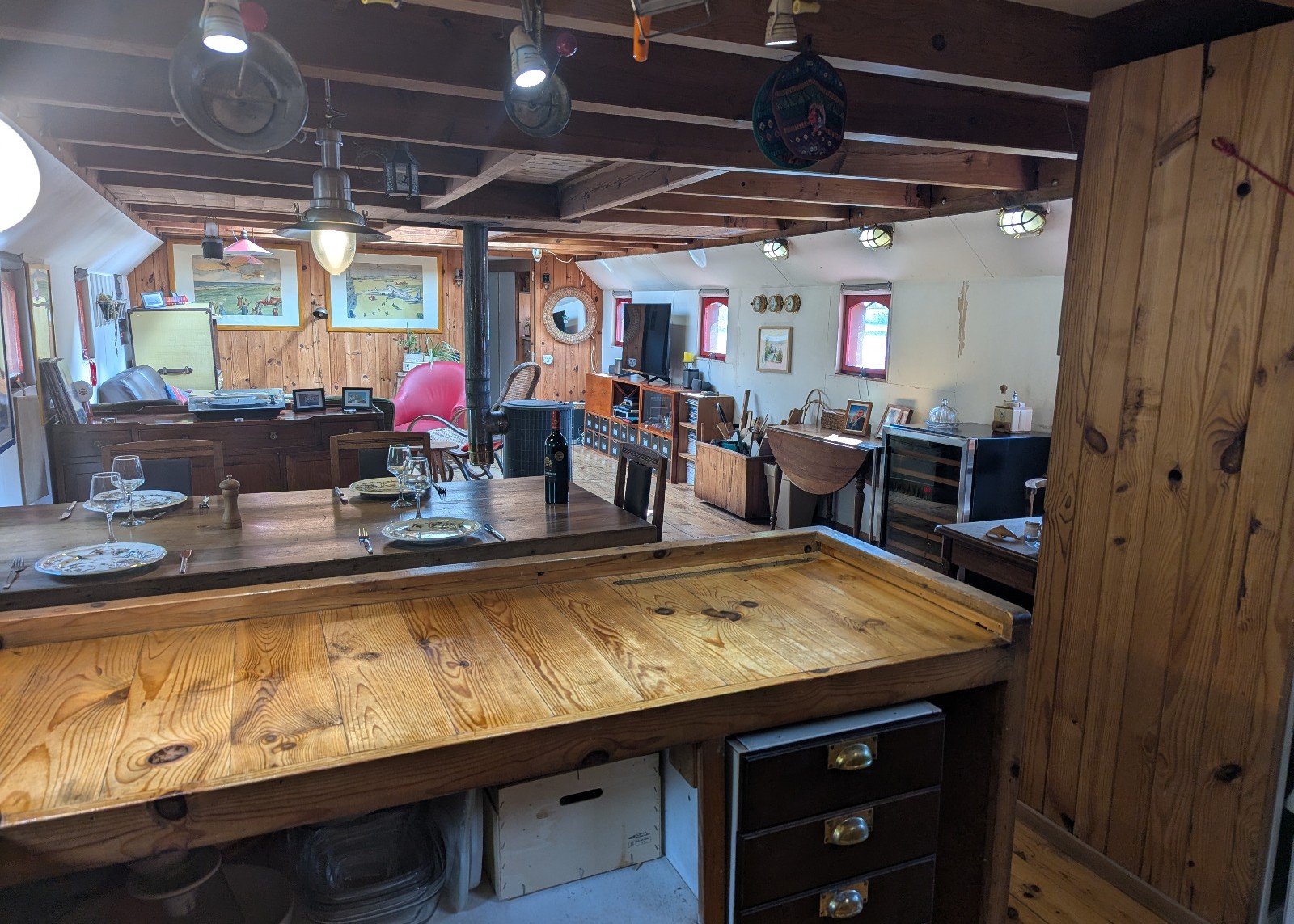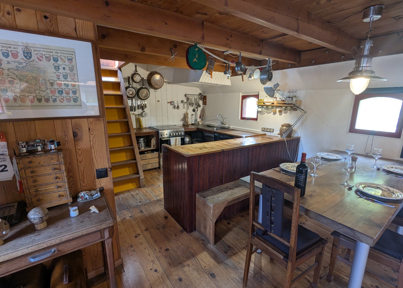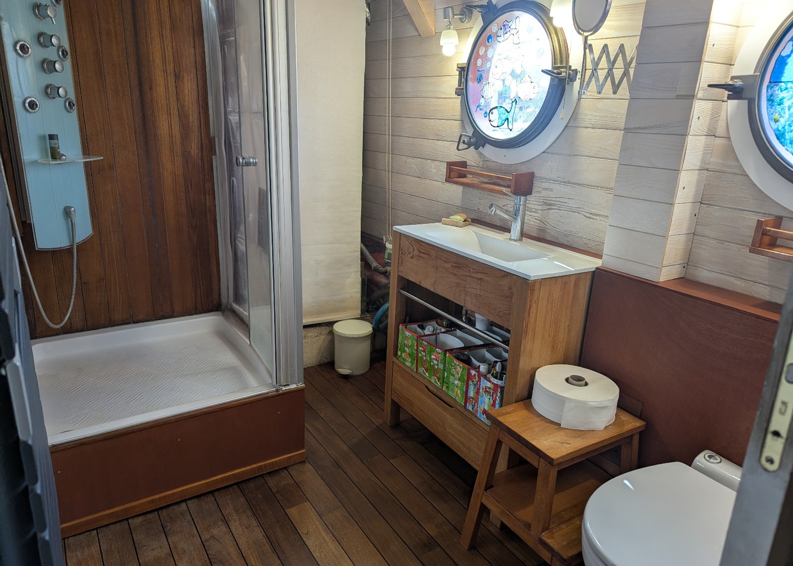 Inside, the layout offers a warm and comfortable living environment. The barge has four cabins, ideal for accommodating family and guests, each designed to optimise space whilst retaining an intimate atmosphere. The particularly pleasant saloon captivates with its spaciousness and natural light, offering a genuine living space conducive to both relaxation and conviviality.