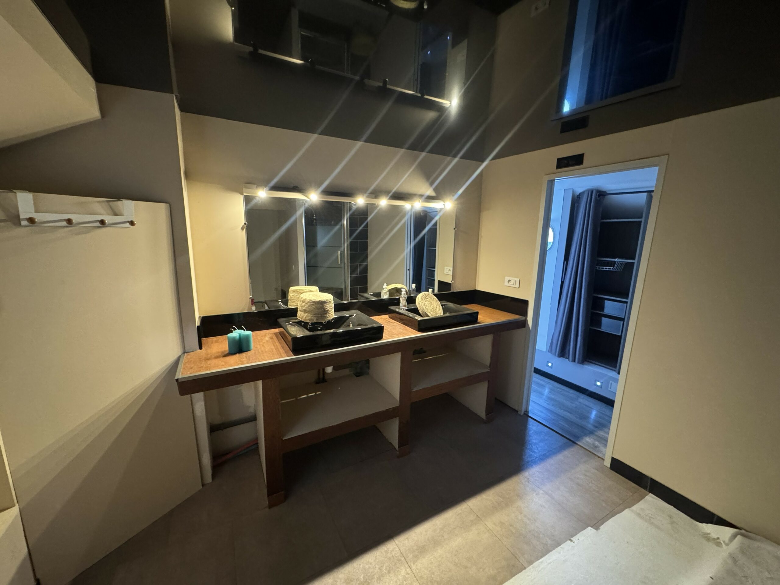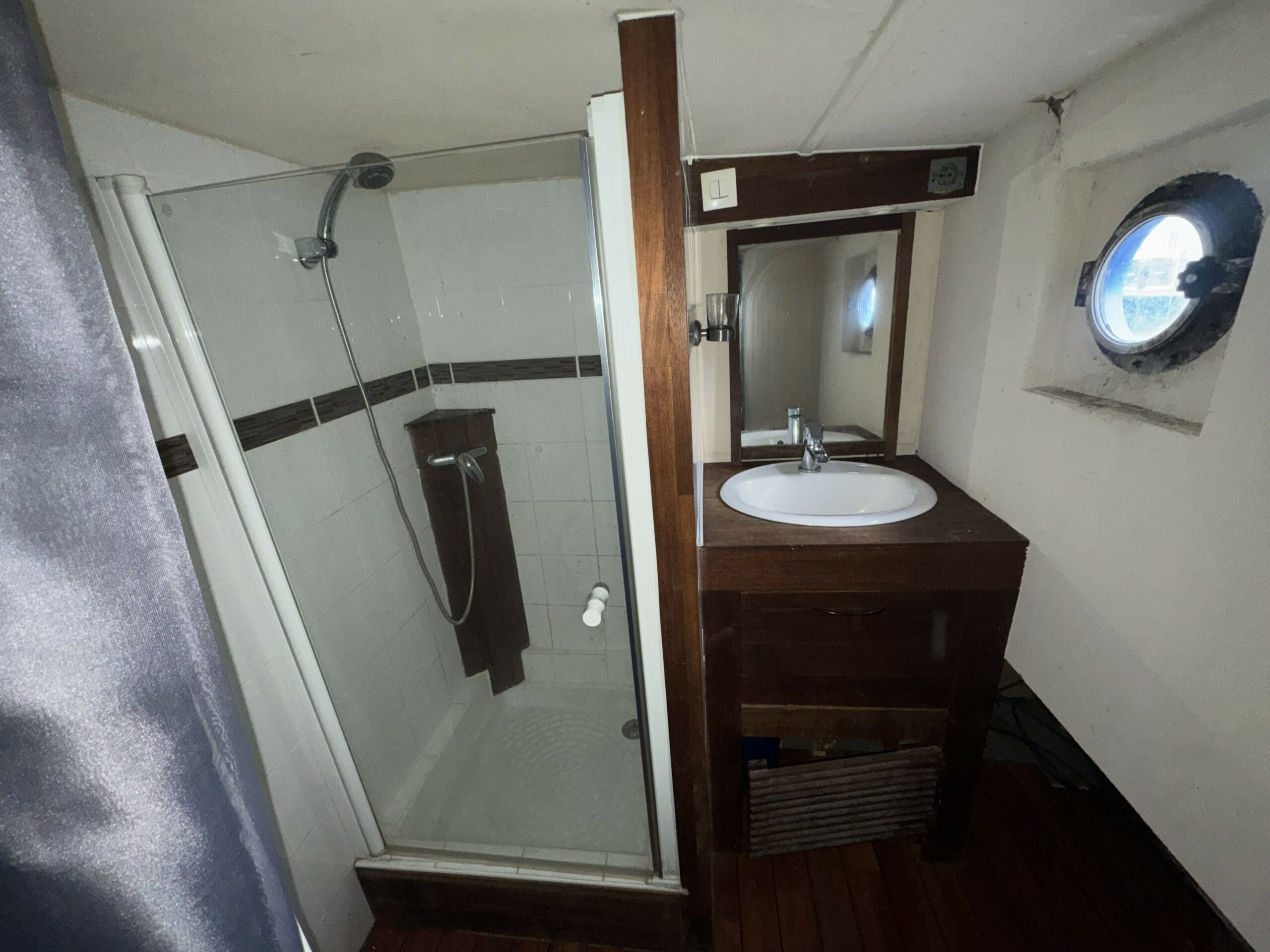 It offers two comfortable cabins and a spacious, modern bathroom. The former captain’s cabin has been converted into a welcoming living space, perfect for moments of relaxation.