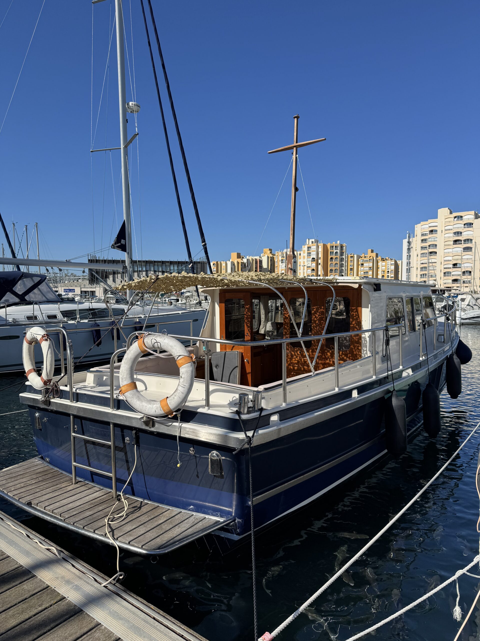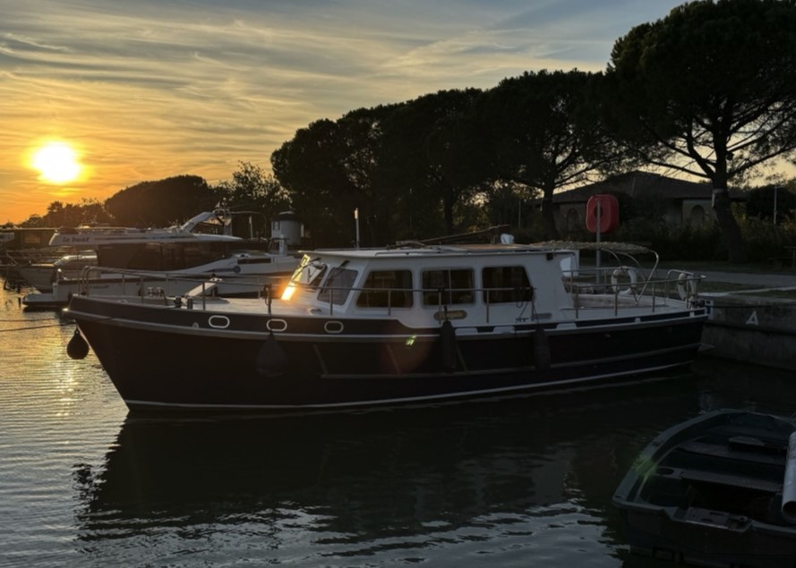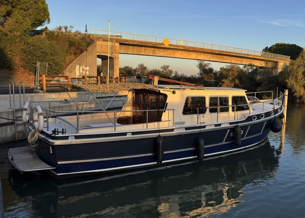 Discover this beautiful Barkas 1100 motor cruiser, measuring 11.30 meters in length and 3.85 meters in width, built in 1997. Designed for mixed cruising, this vessel is well known for its excellent onboard comfort. Its single-level layout, with very few steps, makes moving around easy and creates a pleasant sense of space.