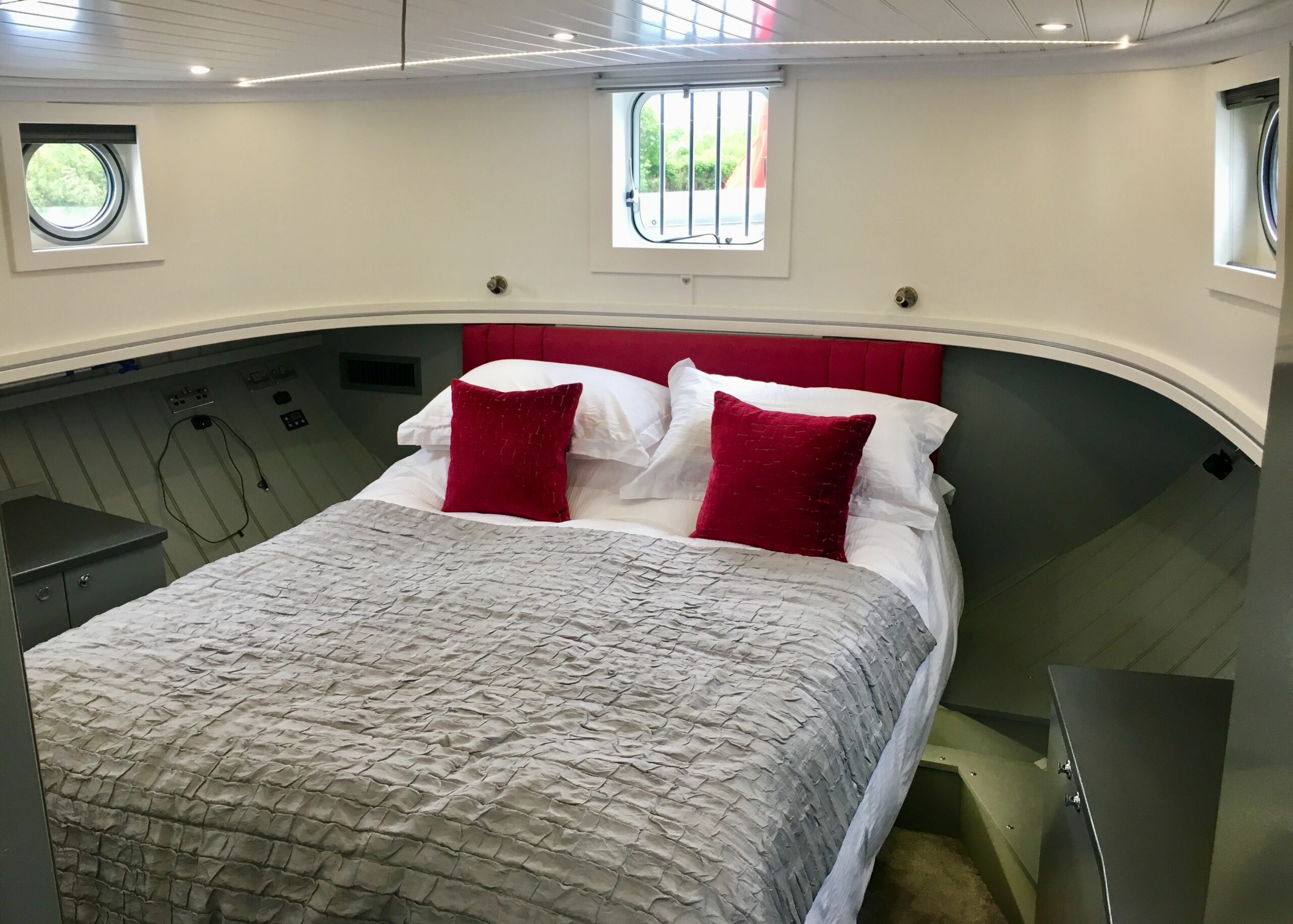 The sleeping quarters offer privacy and luxury with two superb cabins: an owner’s cabin with a king-size bed and a guest cabin with a queen-size bed, both fitted with storage space, Dometic air conditioning, radiators, and elegant en-suite bathrooms featuring a shower, toilet, glass washbasin and heated towel rail.