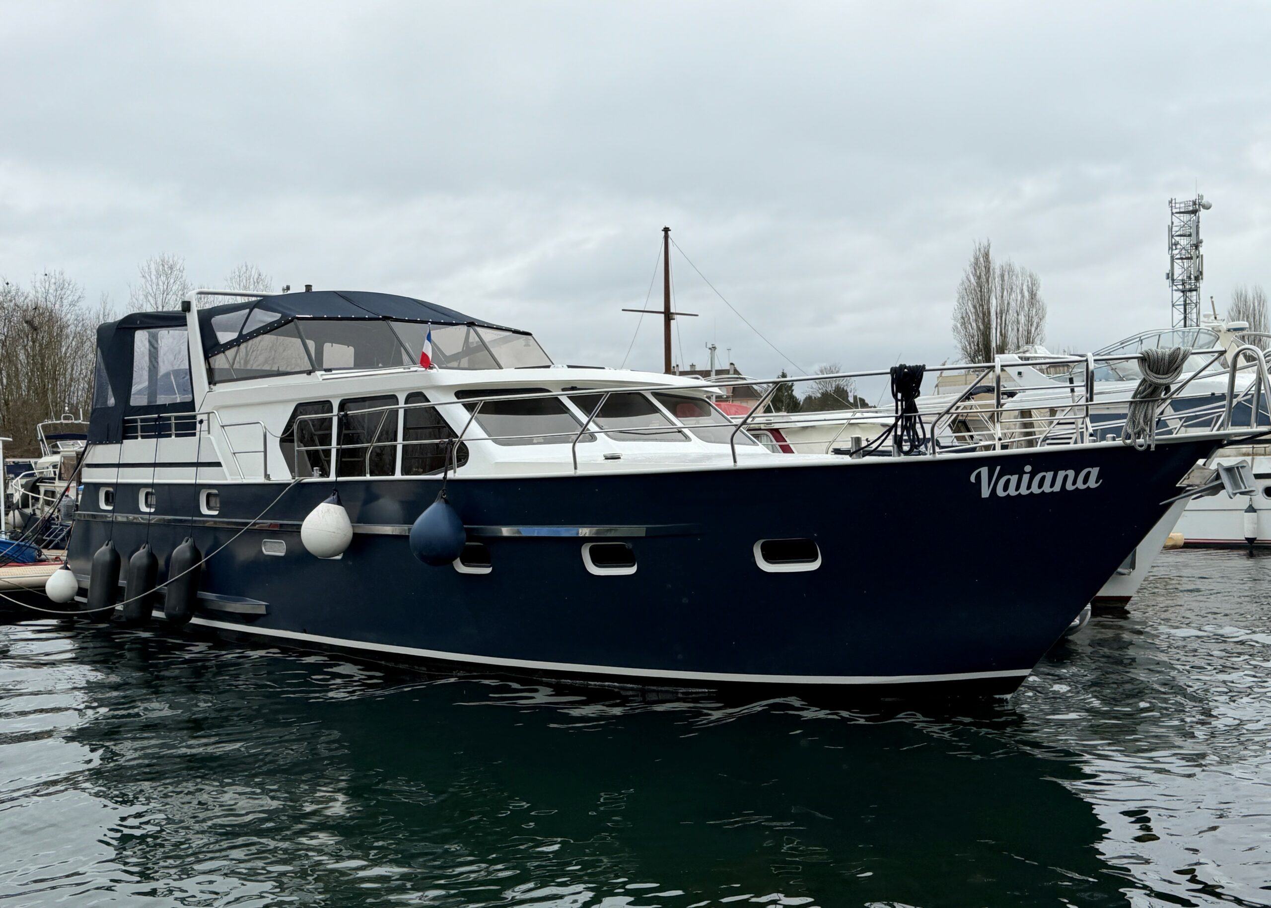 Vedette Brandsma Vlet built in 2009. Category B. She is very well equiped for sea and revier cruising. The terrace is pleasant and its awning can be removed to fully enjoy the sunny weather during your cruises. The interior is comfortable and offers everything necessary to live aboard: a bright living room, a nice kitchen, two double cabins and bathroom.