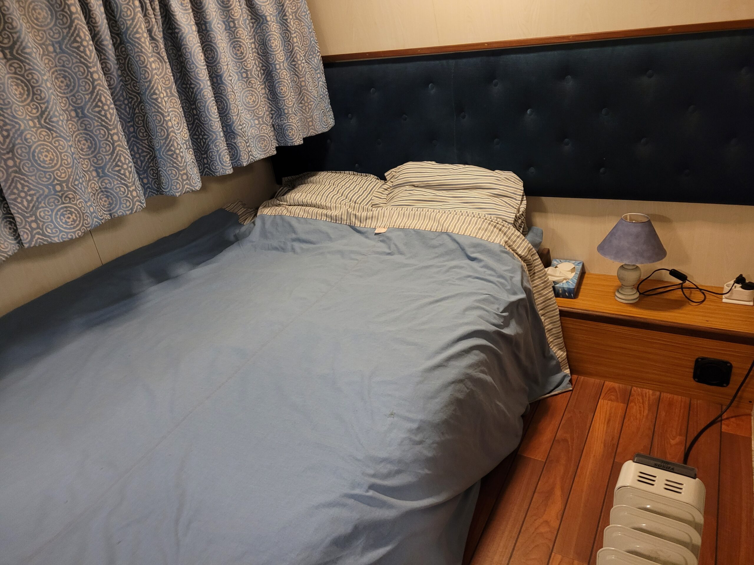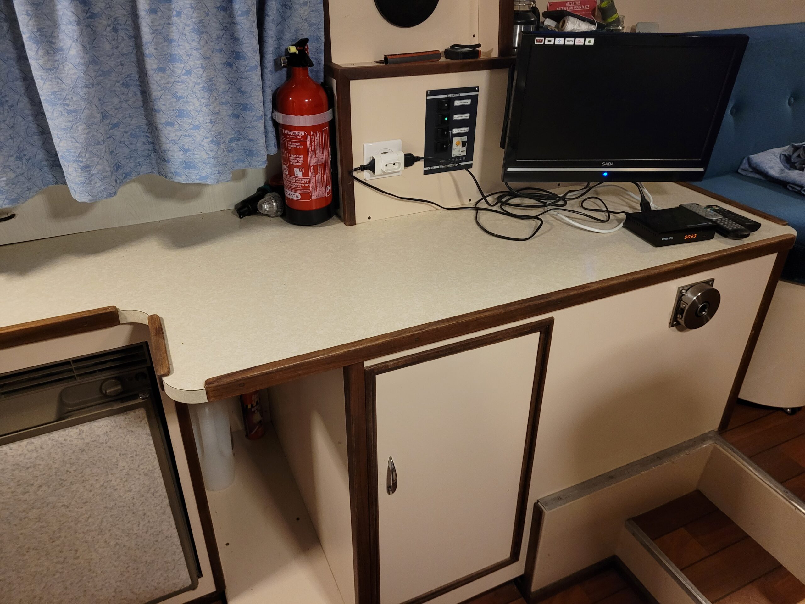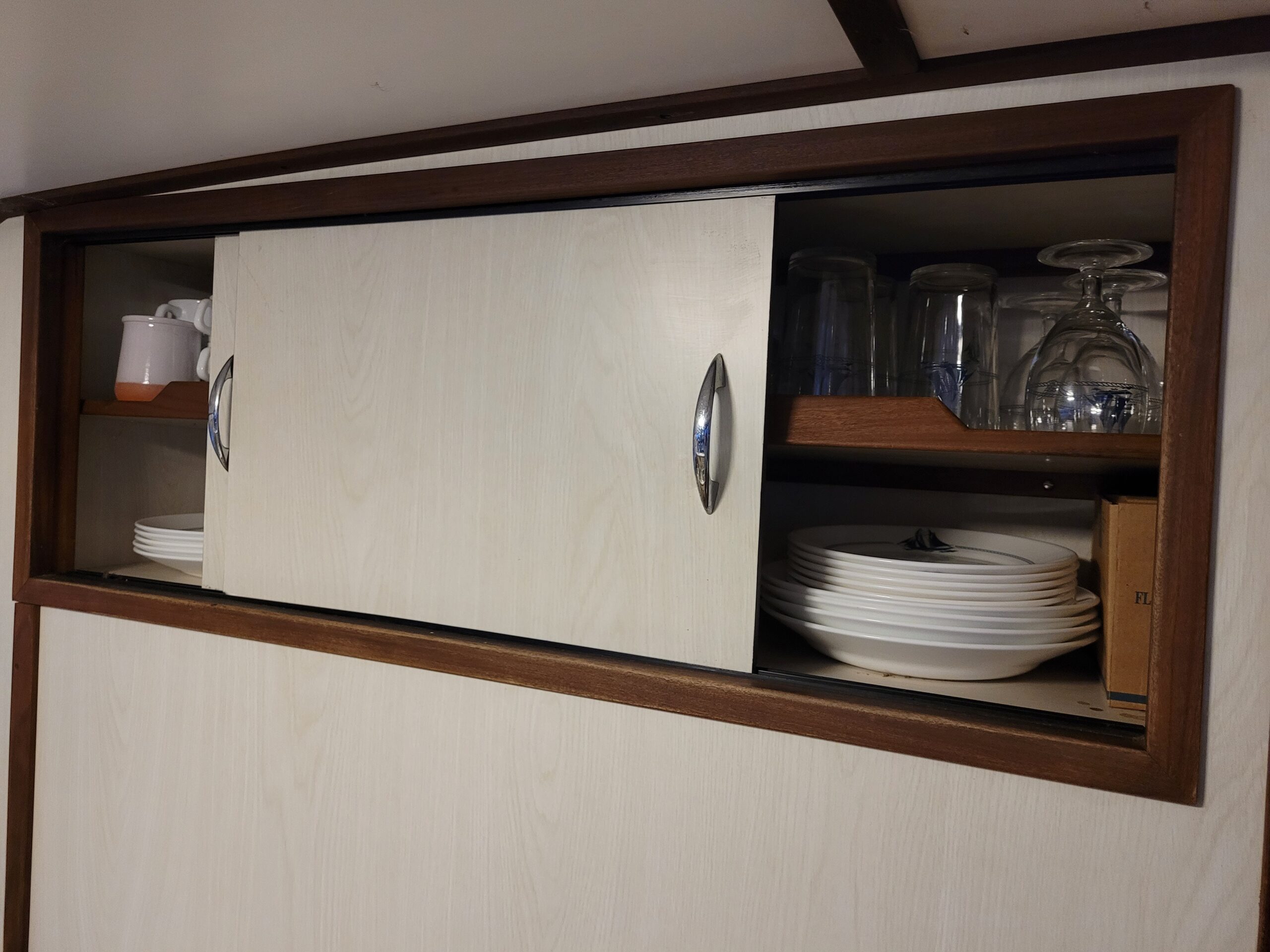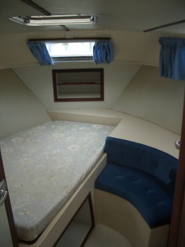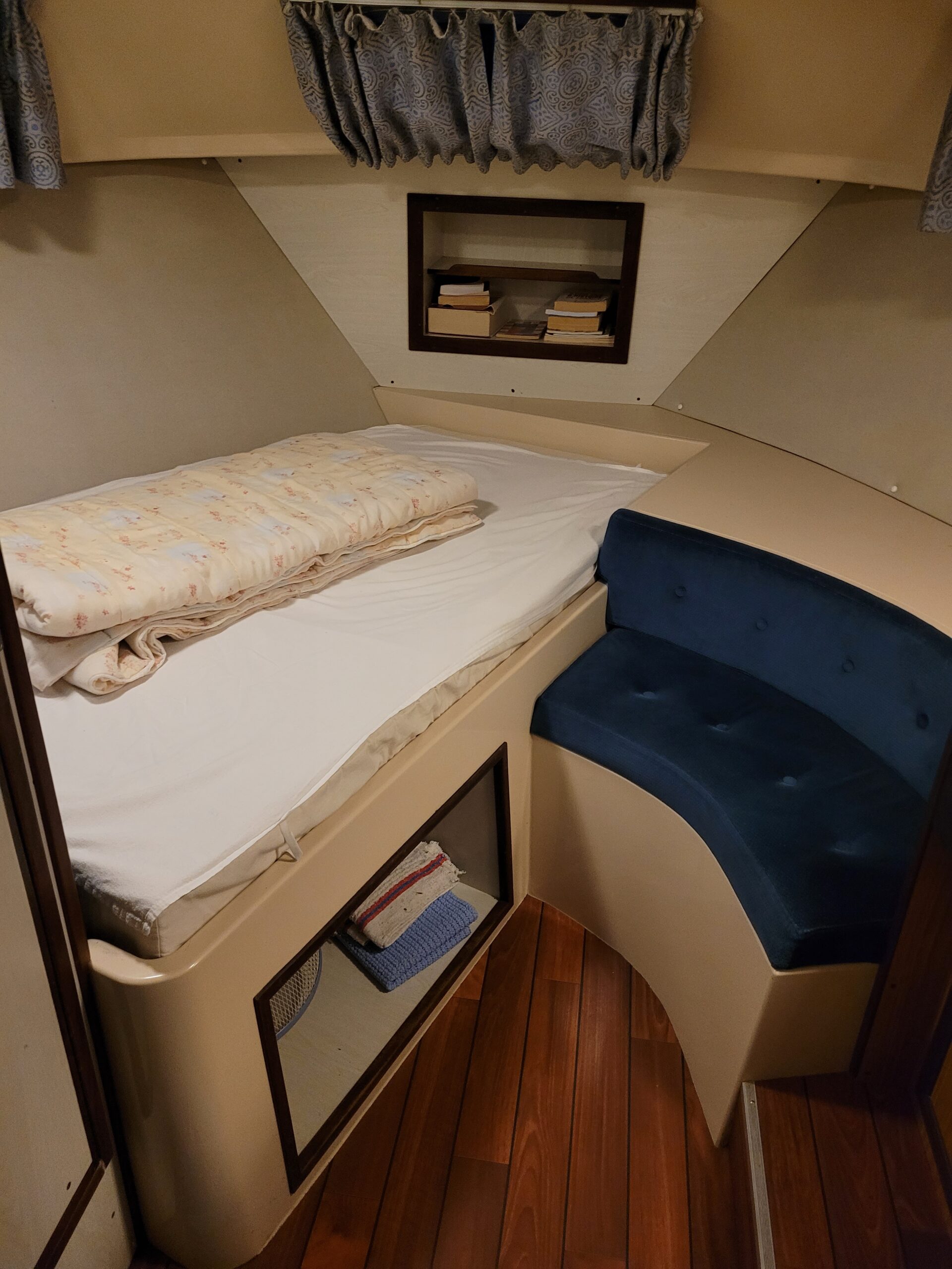 Its spacious and light-filled interior layout features a welcoming saloon, a functional galley, and two comfortable cabins, allowing you to host family and friends in excellent comfort. The spaces are designed for a pleasant life on board, with easy movement around the boat and plenty of storage.