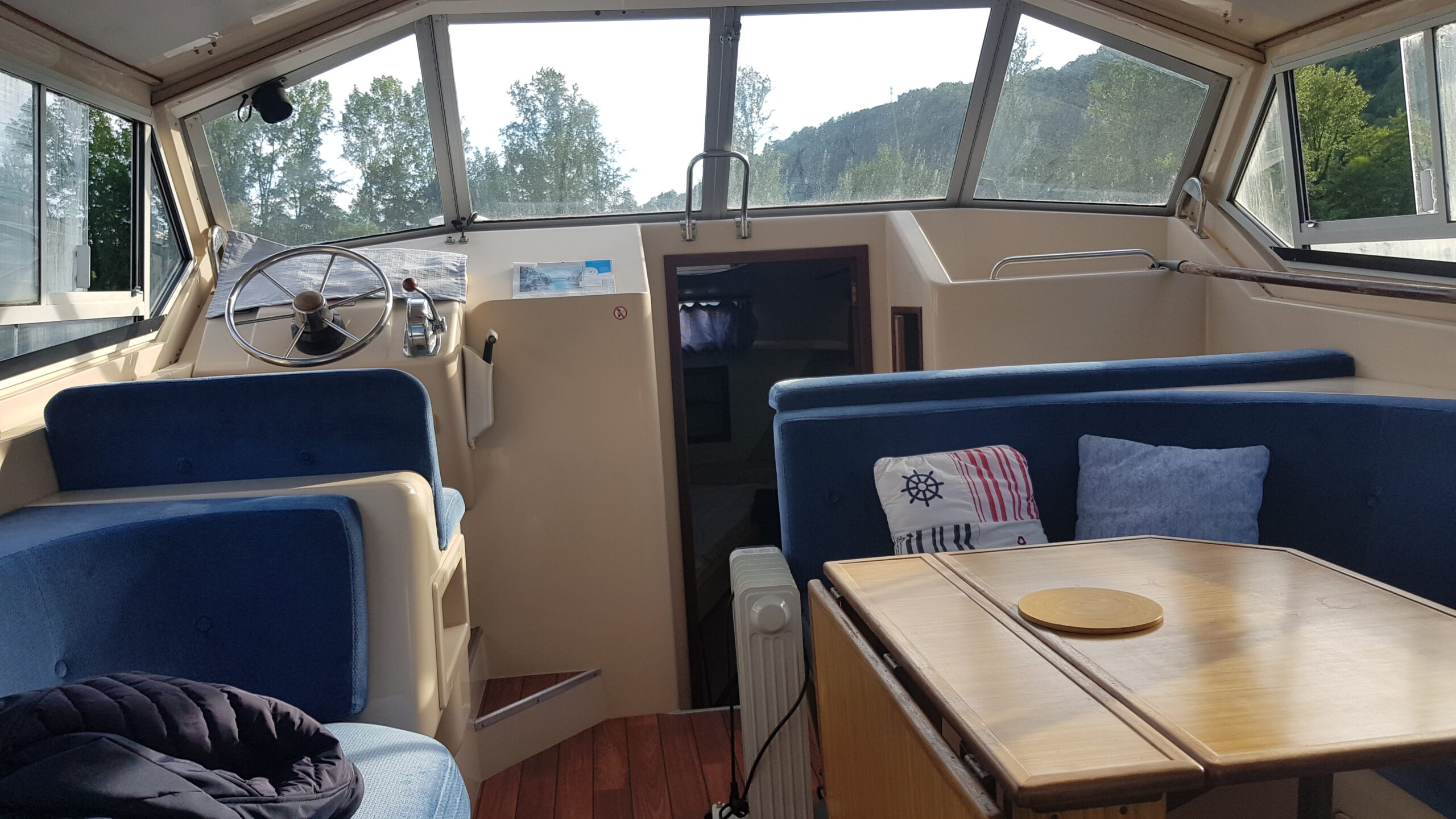 Outside, the boat features an upper deck perfect for enjoying the cruise and the scenery. Its design ensures good visibility and easy handling, even for novice boaters.
