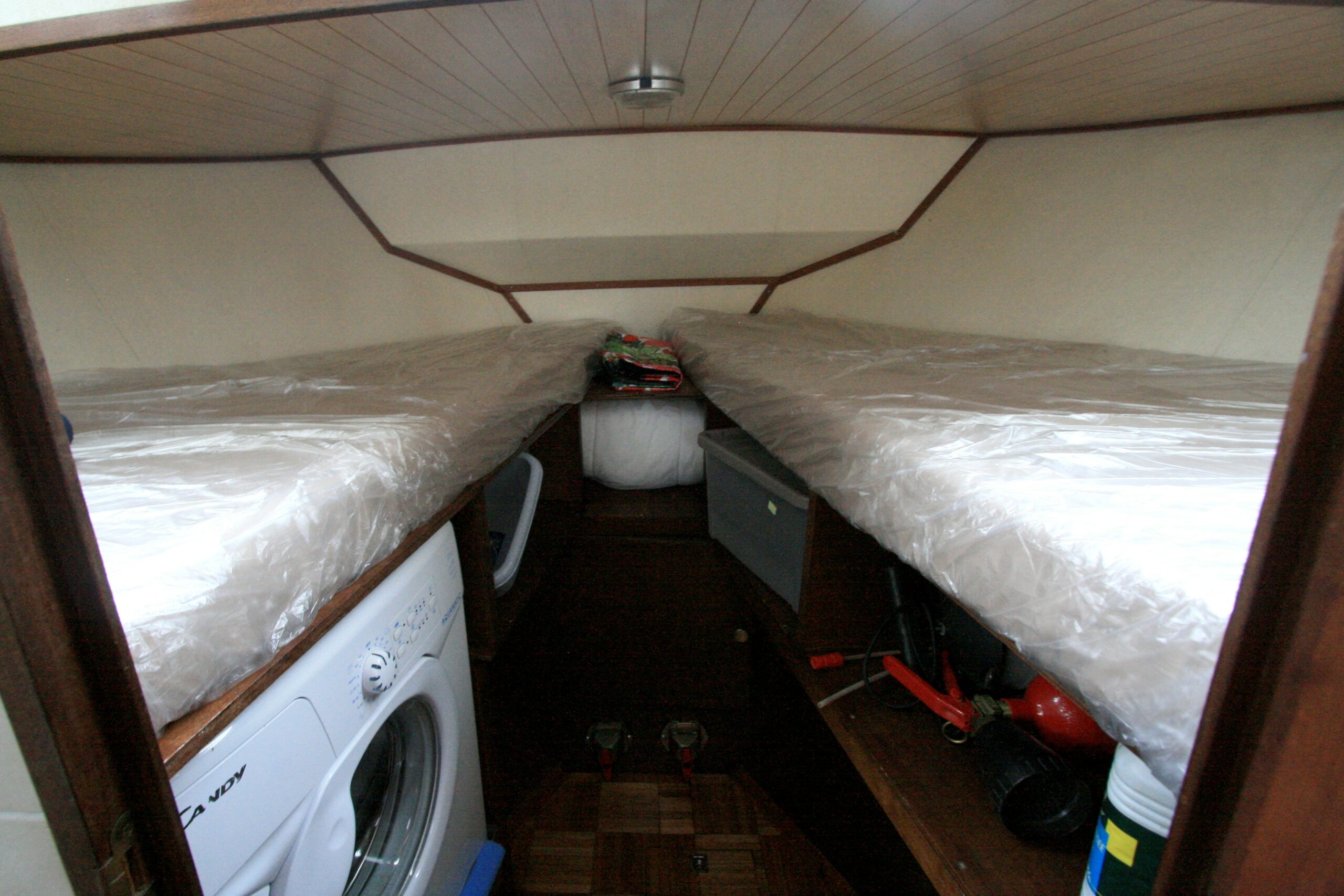 The saloon, which is bright thanks to its central saloon, incorporates the interior helm station and benches with storage lockers. The fully equipped galley faces a dinette that easily converts into a double berth. At the front, a V-shaped cabin offers two single beds and benefits from the presence of a washing machine, a rare asset for a motorboat of this size.