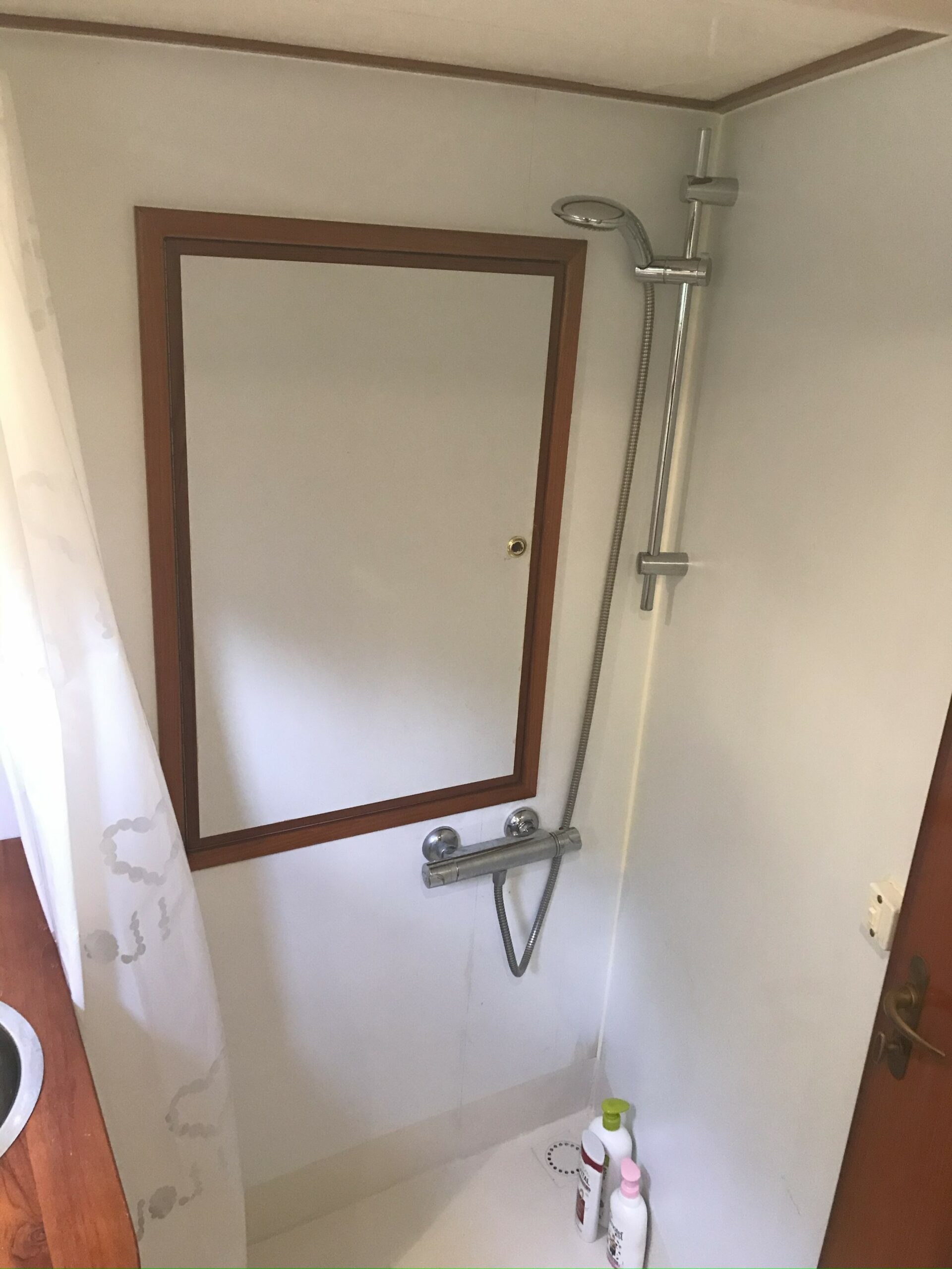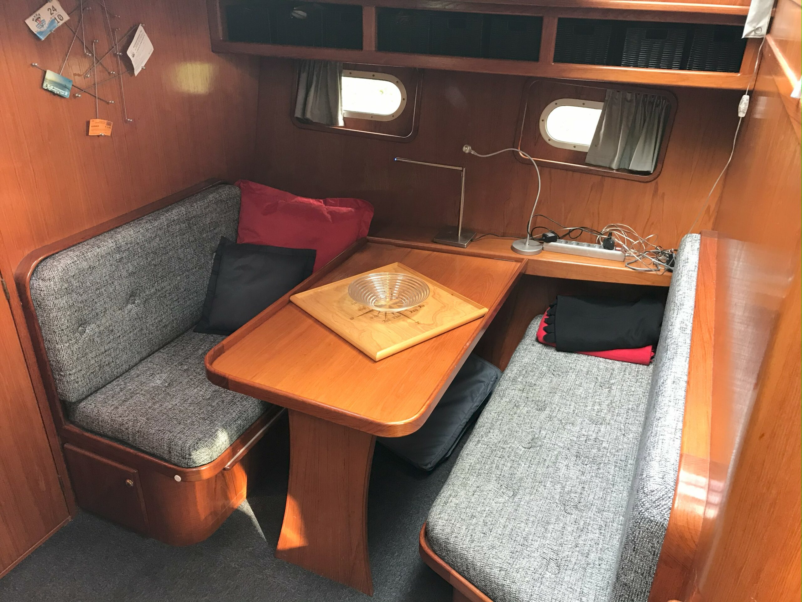 The bright and welcoming interior consists of a spacious saloon, a fully equipped galley, two comfortable cabins, a shower and two WCs. The wheelhouse is spacious, offering excellent visibility and a comfortable helm, both when sailing and at berth.