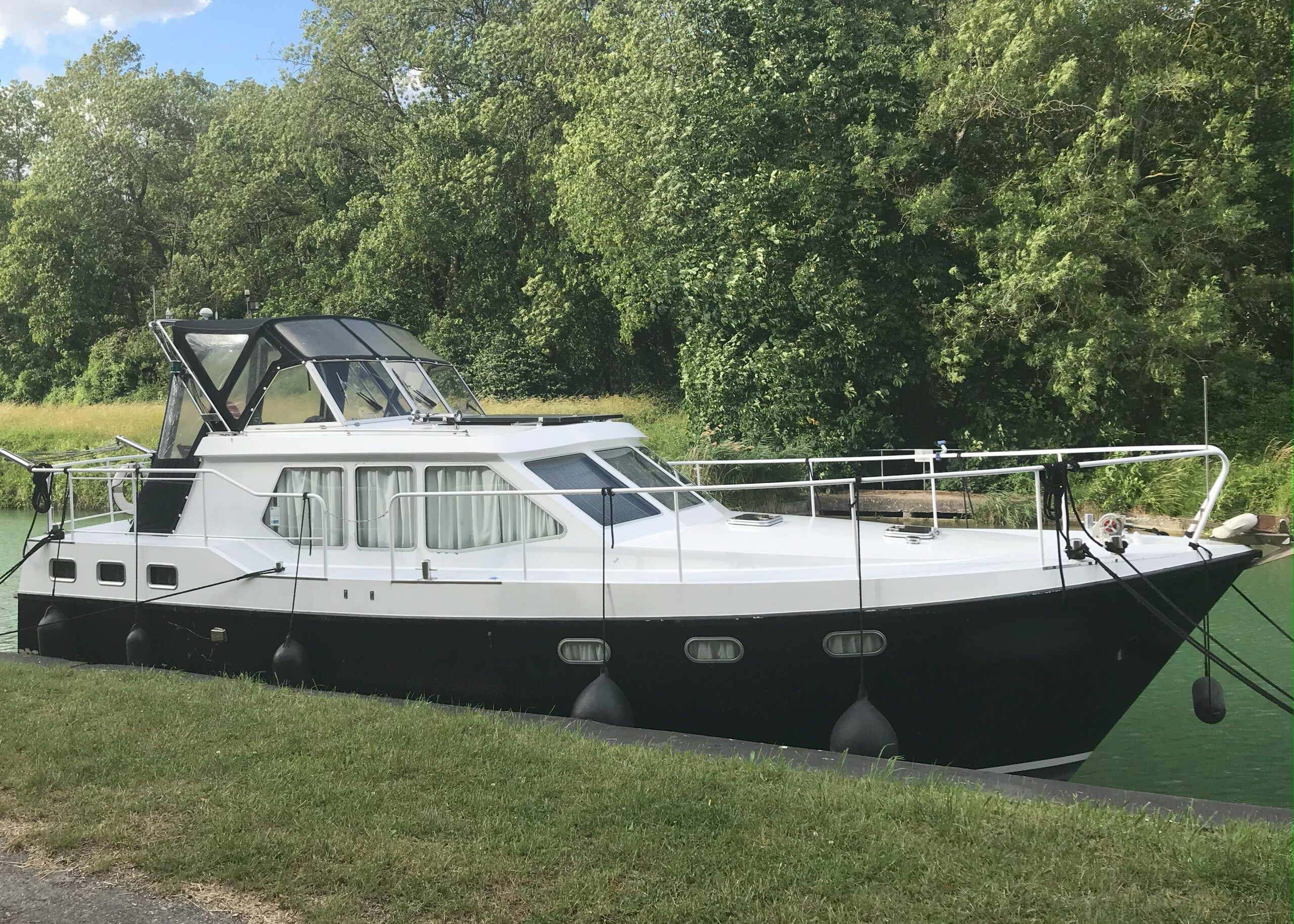 With a length of 10.50 metres and a width of 3.80 metres, this motorboat offers excellent interior space and exemplary stability. Its steel hull and well-designed layout make it a very user-friendly boat.