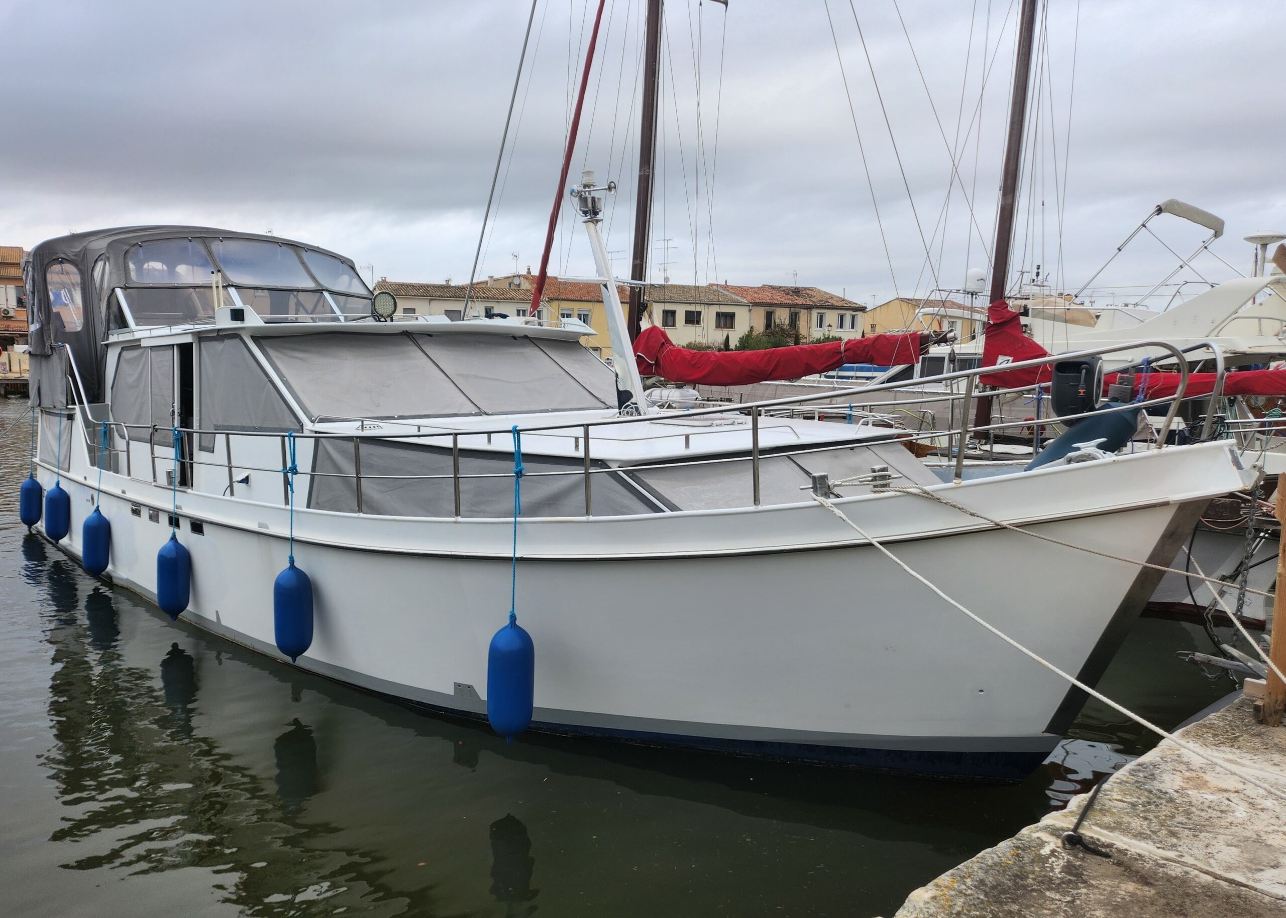 This elegant motorboat stands out above all for its generous and unusual dimensions, which give it a remarkable interior volume, rare for this type of boat. Designed as a true living space, it offers comfort close to that of a home, ideal for peaceful river and coastal cruising.