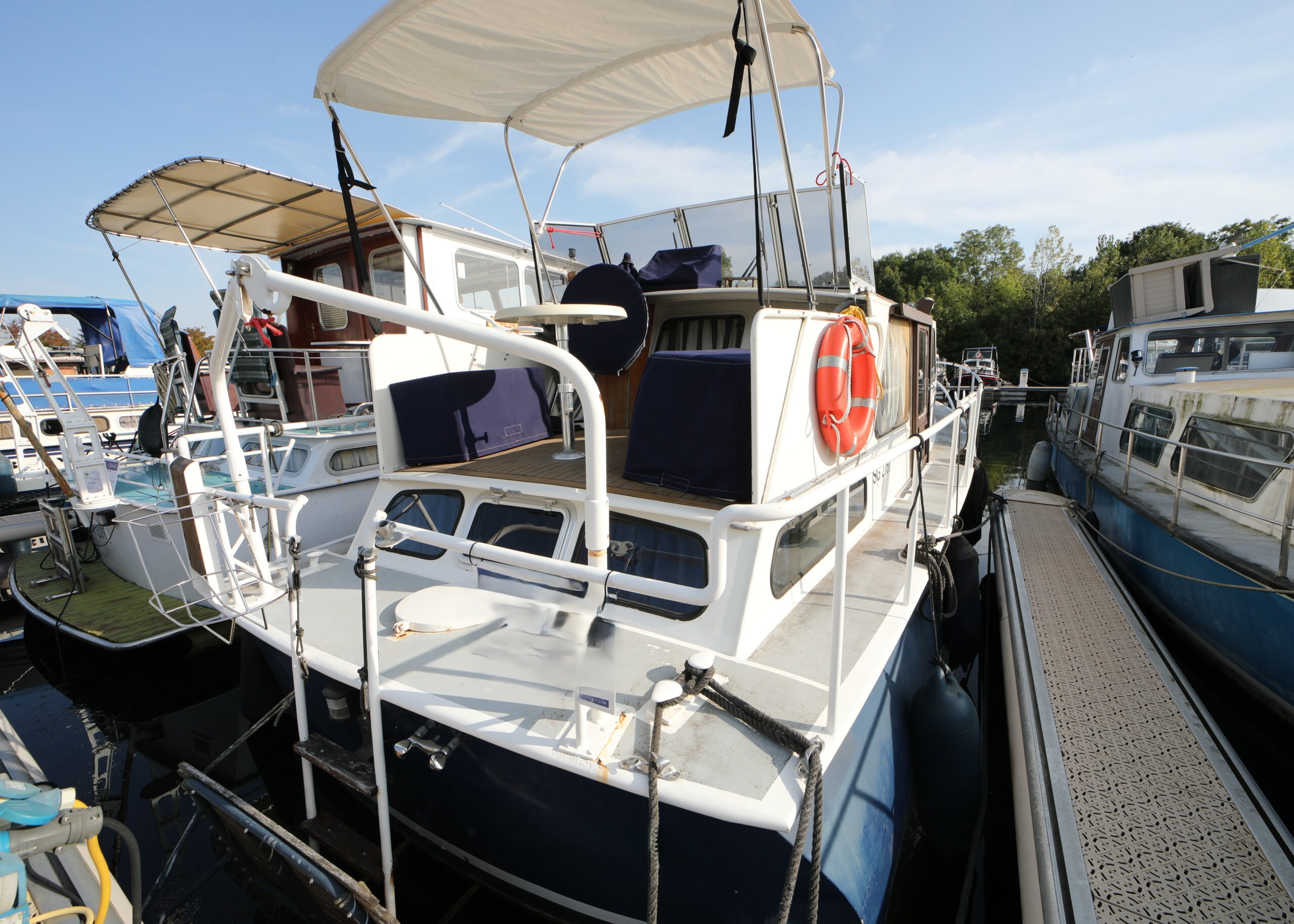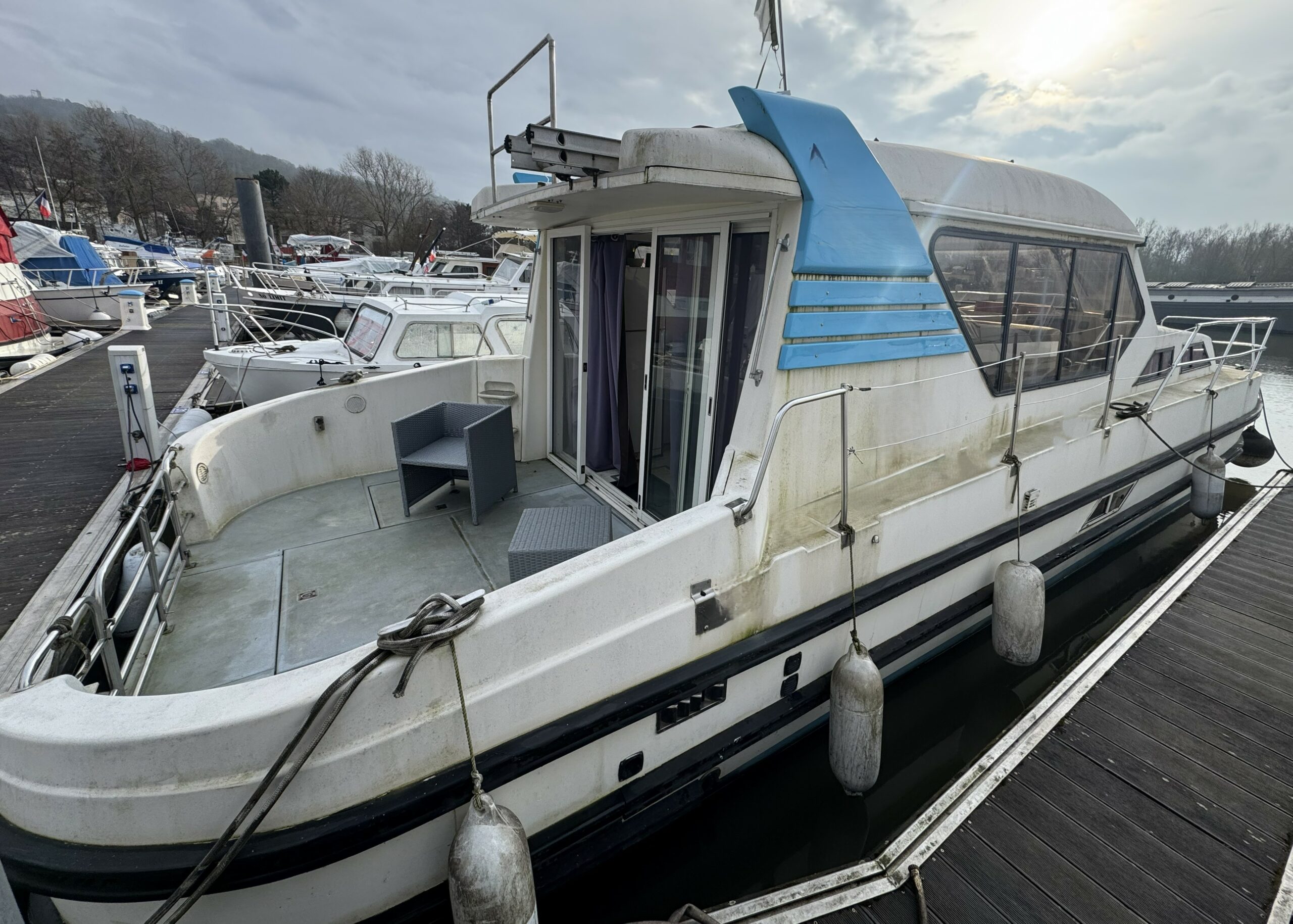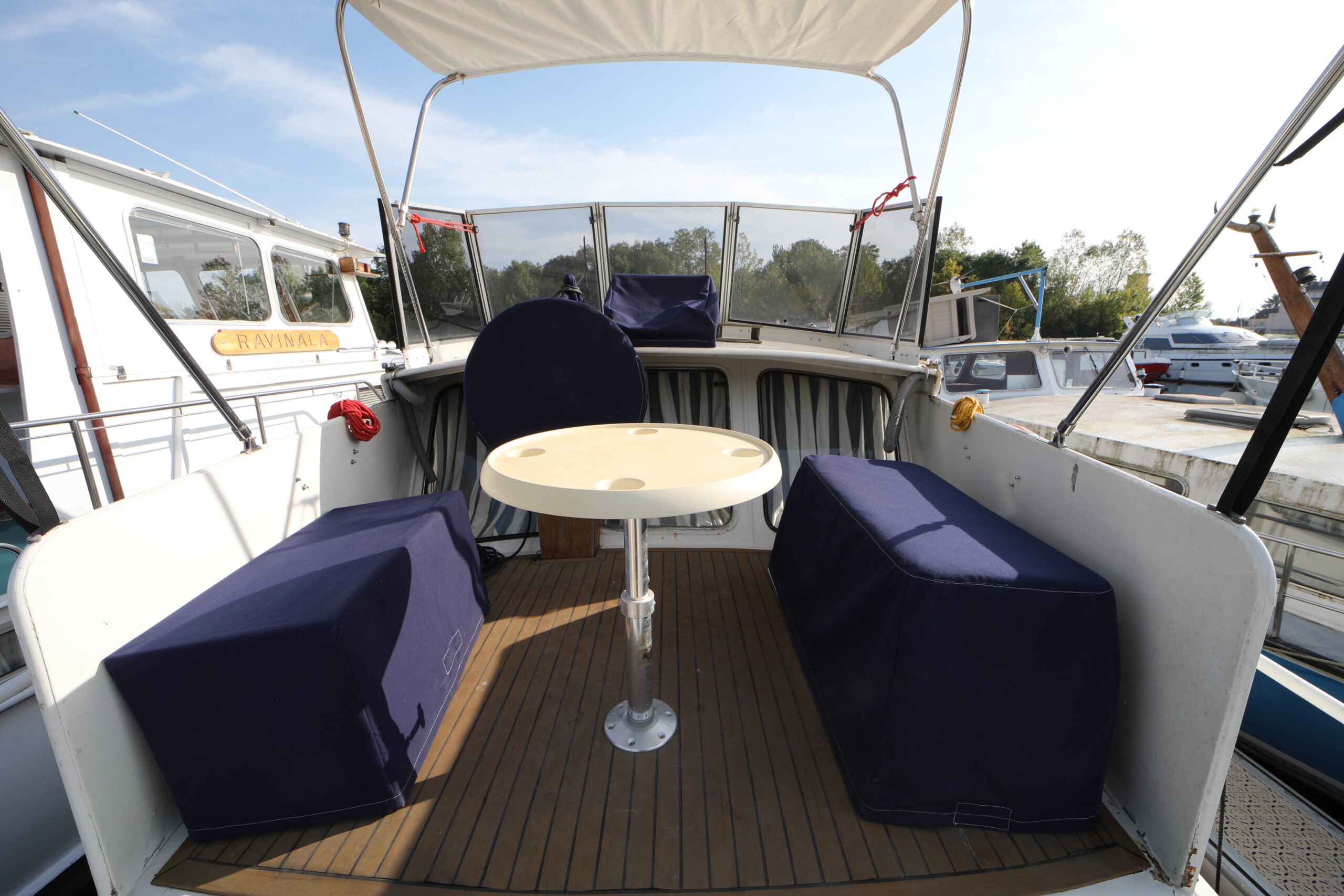 Dutch motorboat built in 1980, ideal for mixed coastal and river navigation. Pleasant to drive and comfortable to live in, it offers a bright and well-designed interior. The outdoor terrace is equipped with a steering position, allowing you to fully enjoy outdoor navigation. Two side entrances facilitate access on board and movement around the boat.