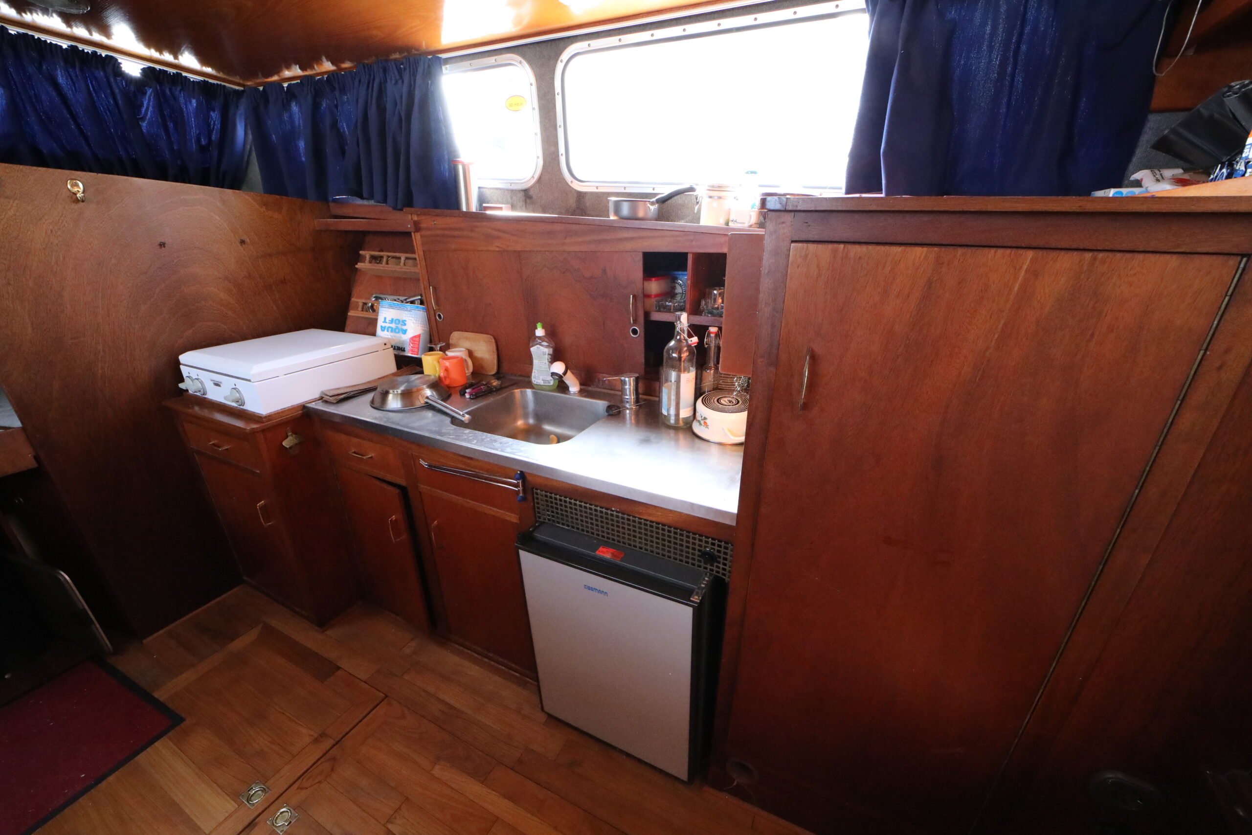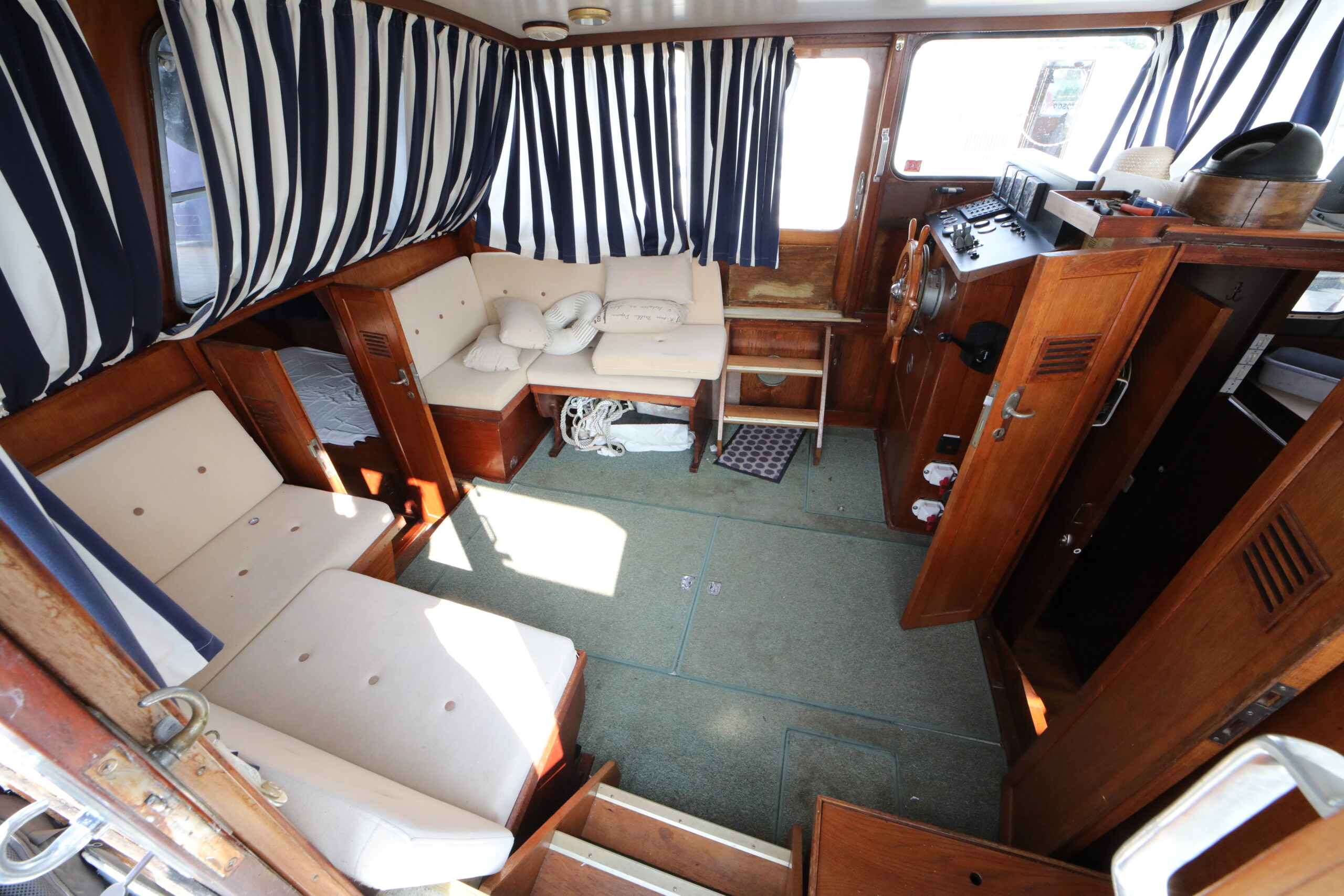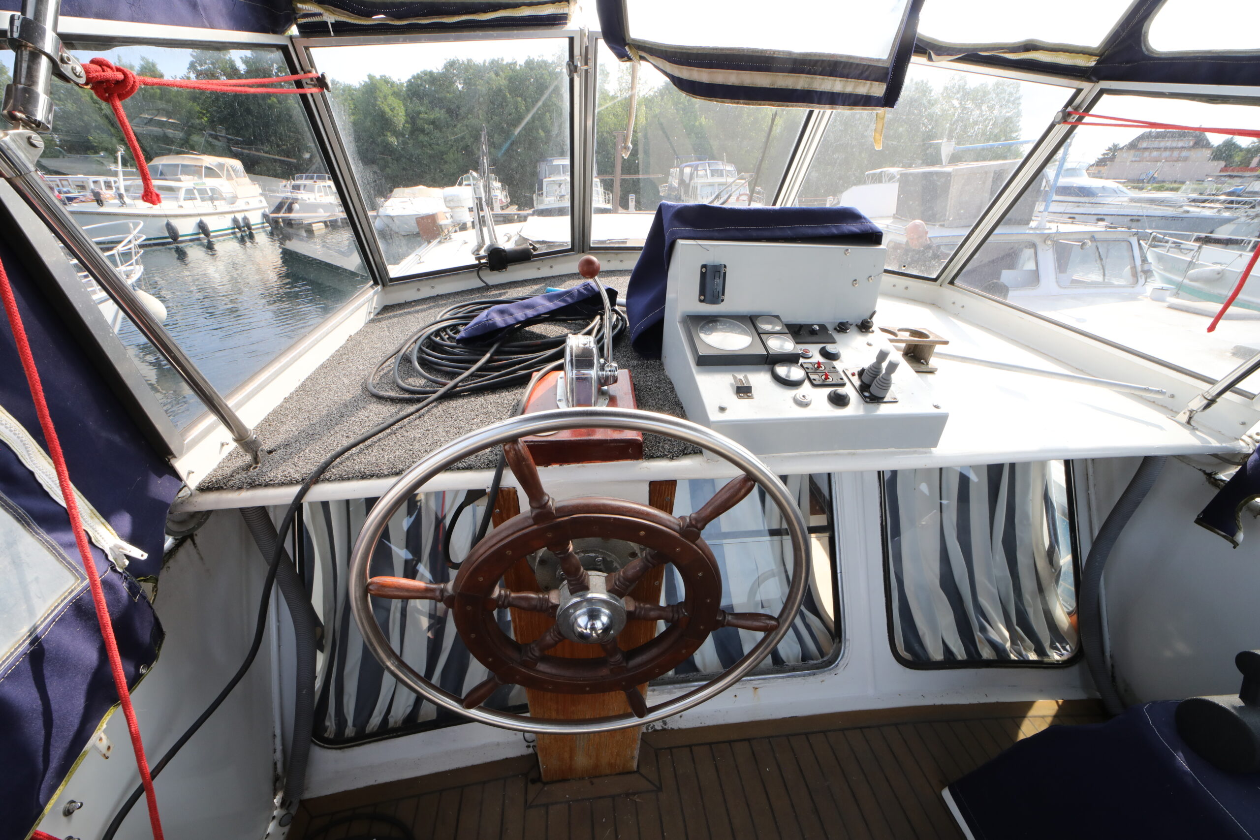Dutch motorboat built in 1980, ideal for mixed coastal and river navigation. Pleasant to drive and comfortable to live in, it offers a bright and well-designed interior. The outdoor terrace is equipped with a steering position, allowing you to fully enjoy outdoor navigation. Two side entrances facilitate access on board and movement around the boat.