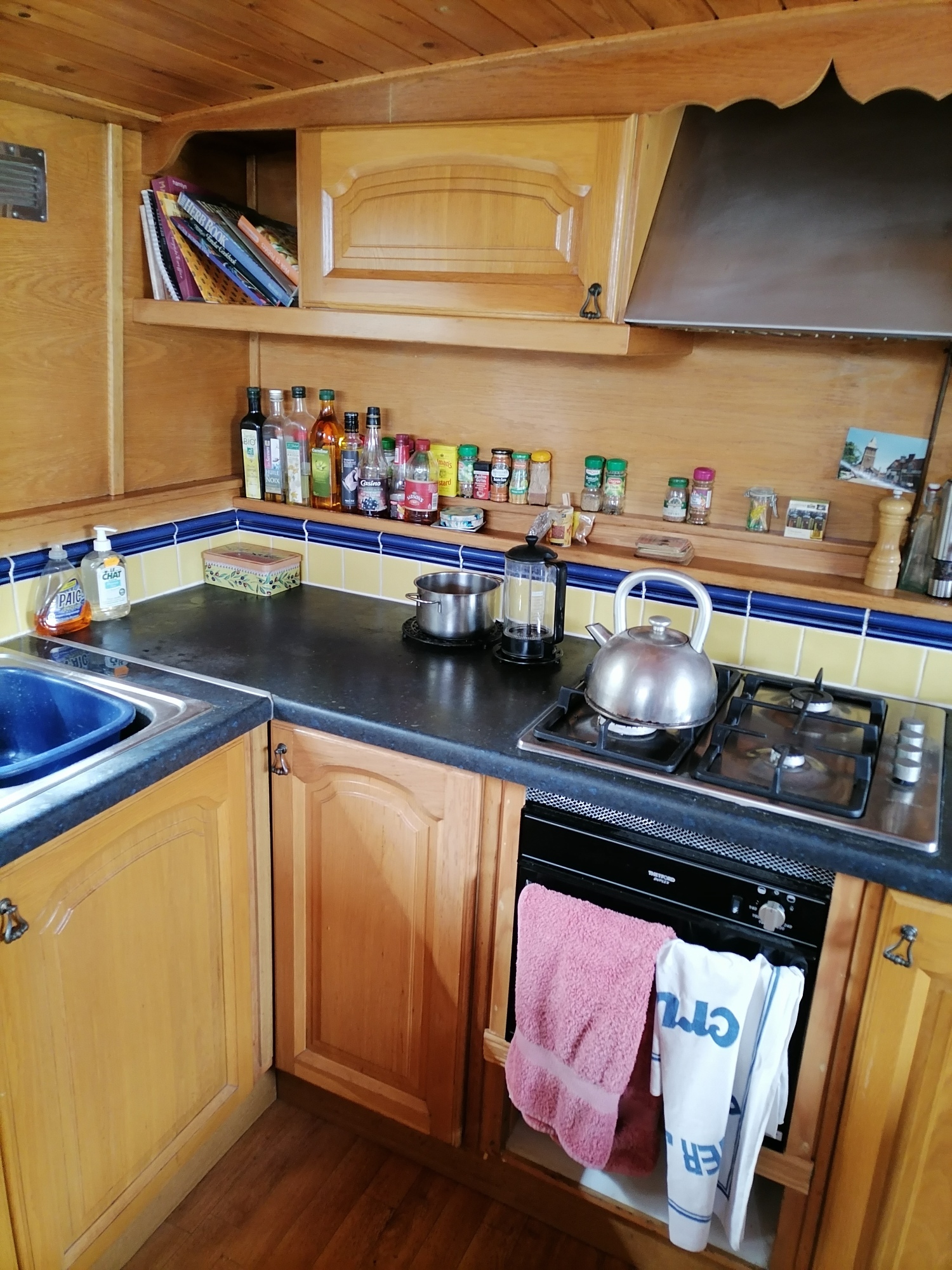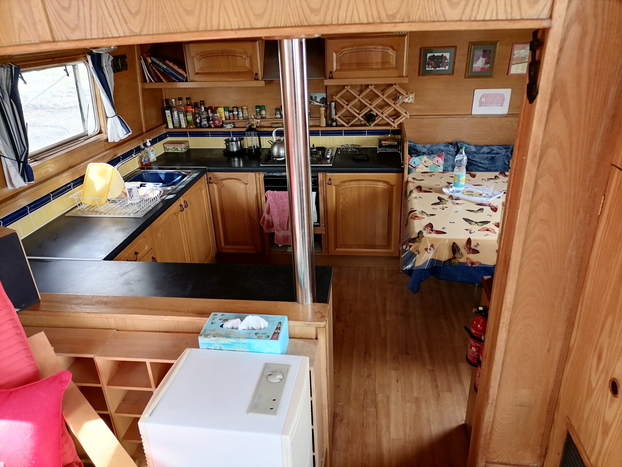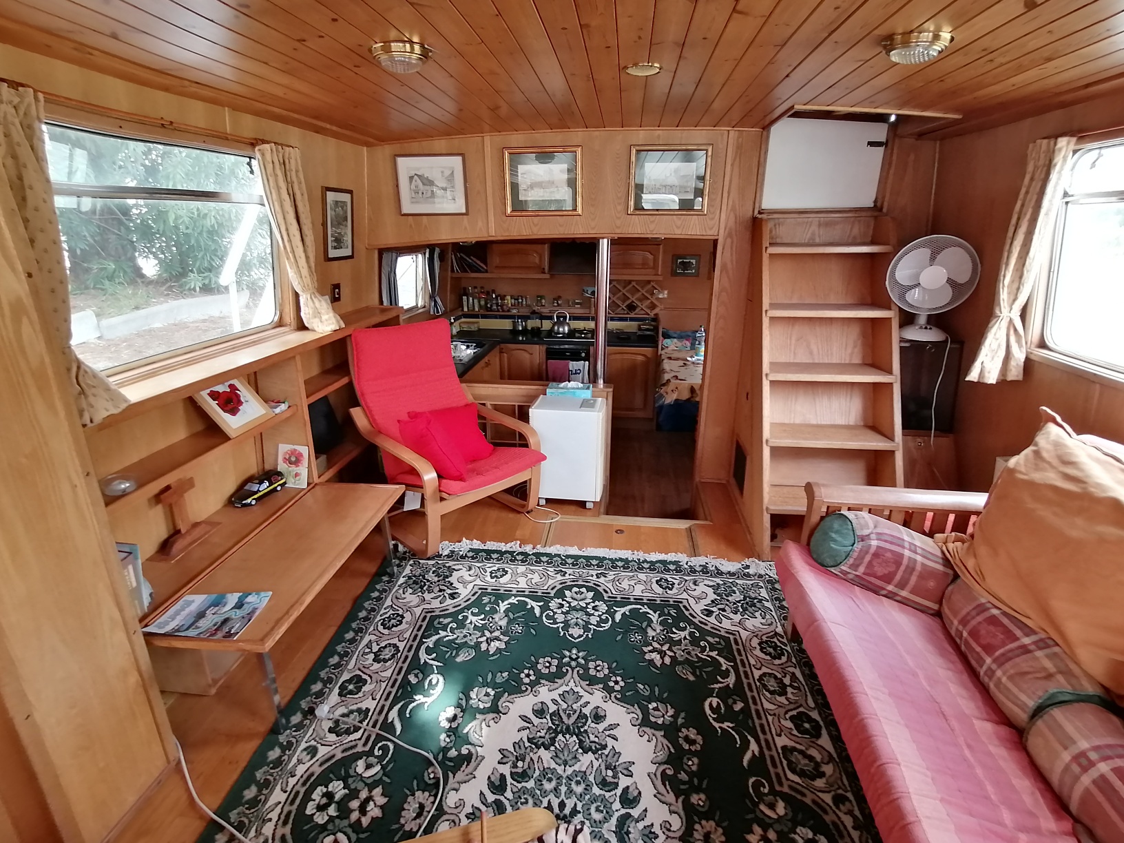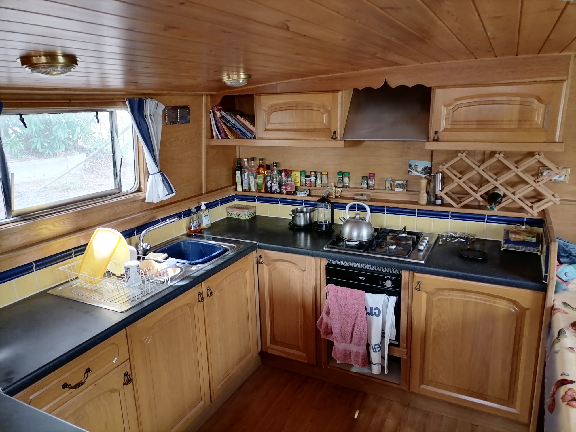 This barge is as much a pleasant cruising boat as it is a comfortable and functional floating residence.