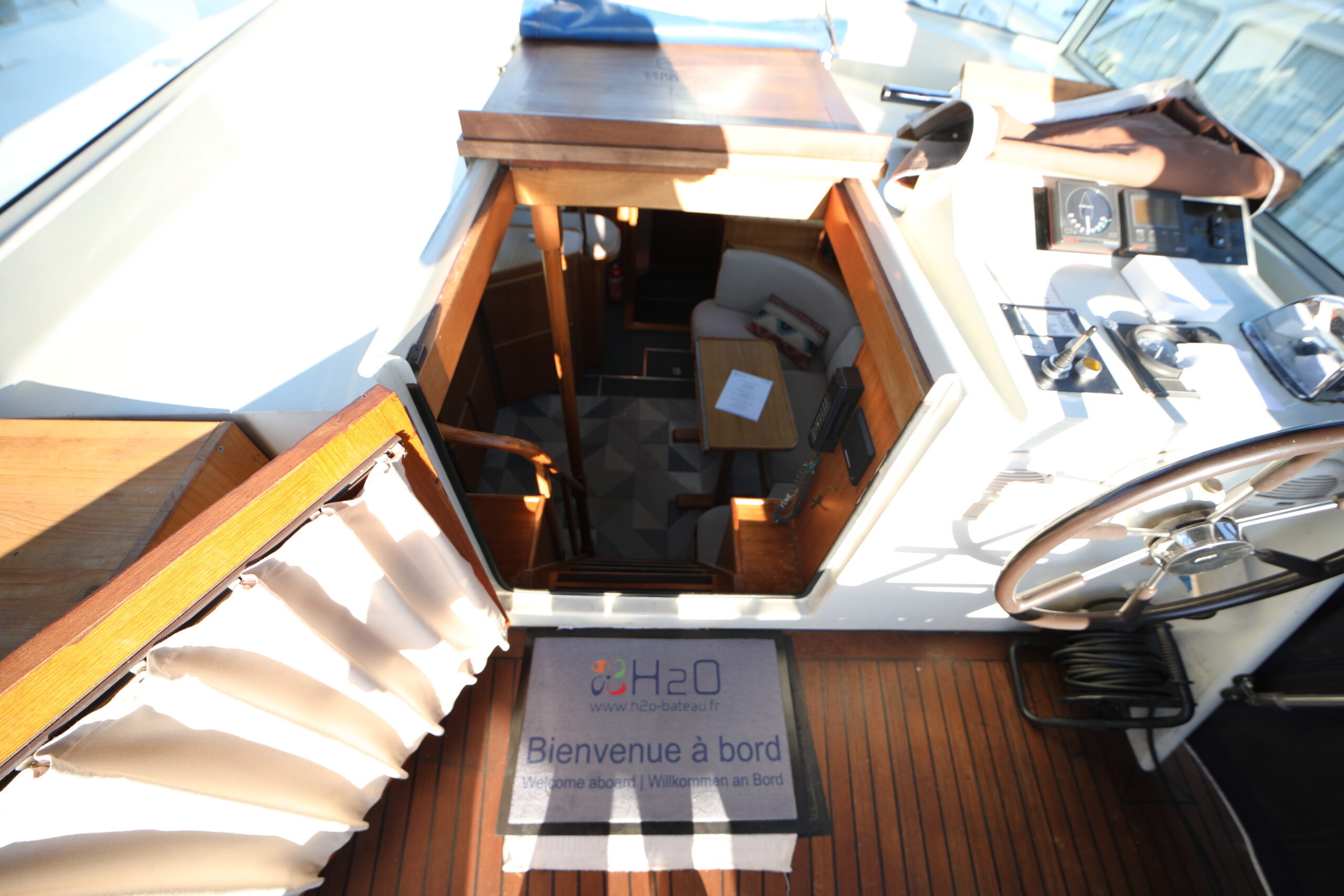 On board, comfort is guaranteed with a spacious terrace ideal for relaxation, a lounge bathed in natural light, a cosy double cabin, a well-equipped bathroom, and a functional kitchen with a refrigerator, oven and washing machine installed in 2022. The dinette completes this warm and welcoming living space, designed for pleasant sailing and comfortable life on board, whether for occasional cruises or extended use.