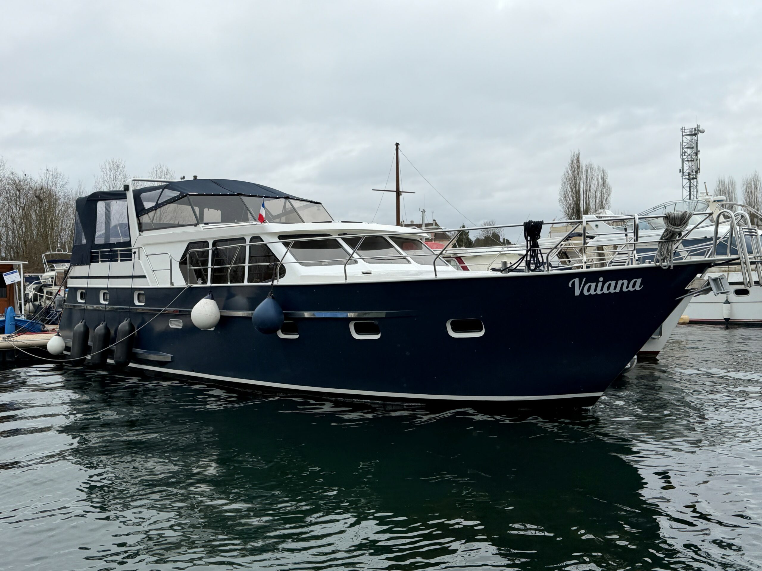 Built by the renowned Porter & Haylett shipyard, this boat stands out for its spacious layout and onboard comfort designed for extended living. The large saloon, the true heart of life on board, provides an ideal space to gather, relax, or enjoy a convivial meal around its generous table. Bright and welcoming, it also includes a modern, fully equipped galley (gas hob, refrigerators, freezer, 220V oven, extractor hood, microwave), along with a comfortable helm station.