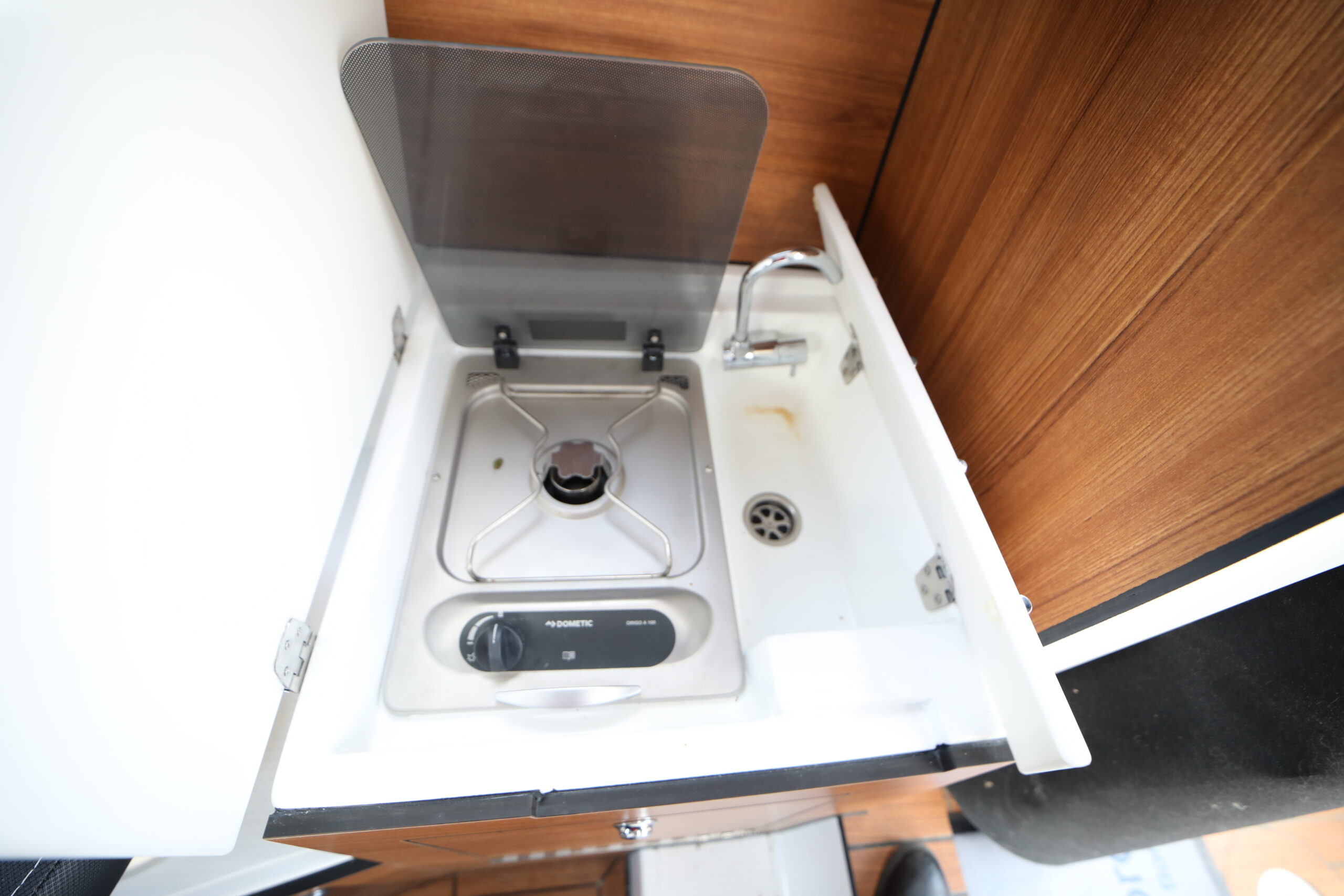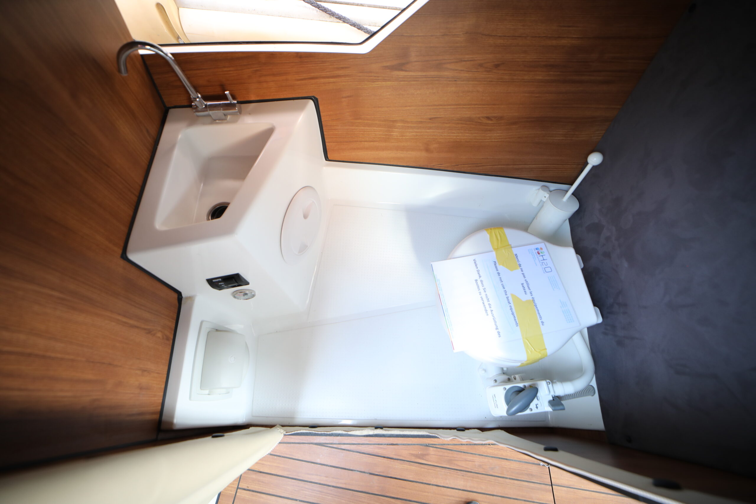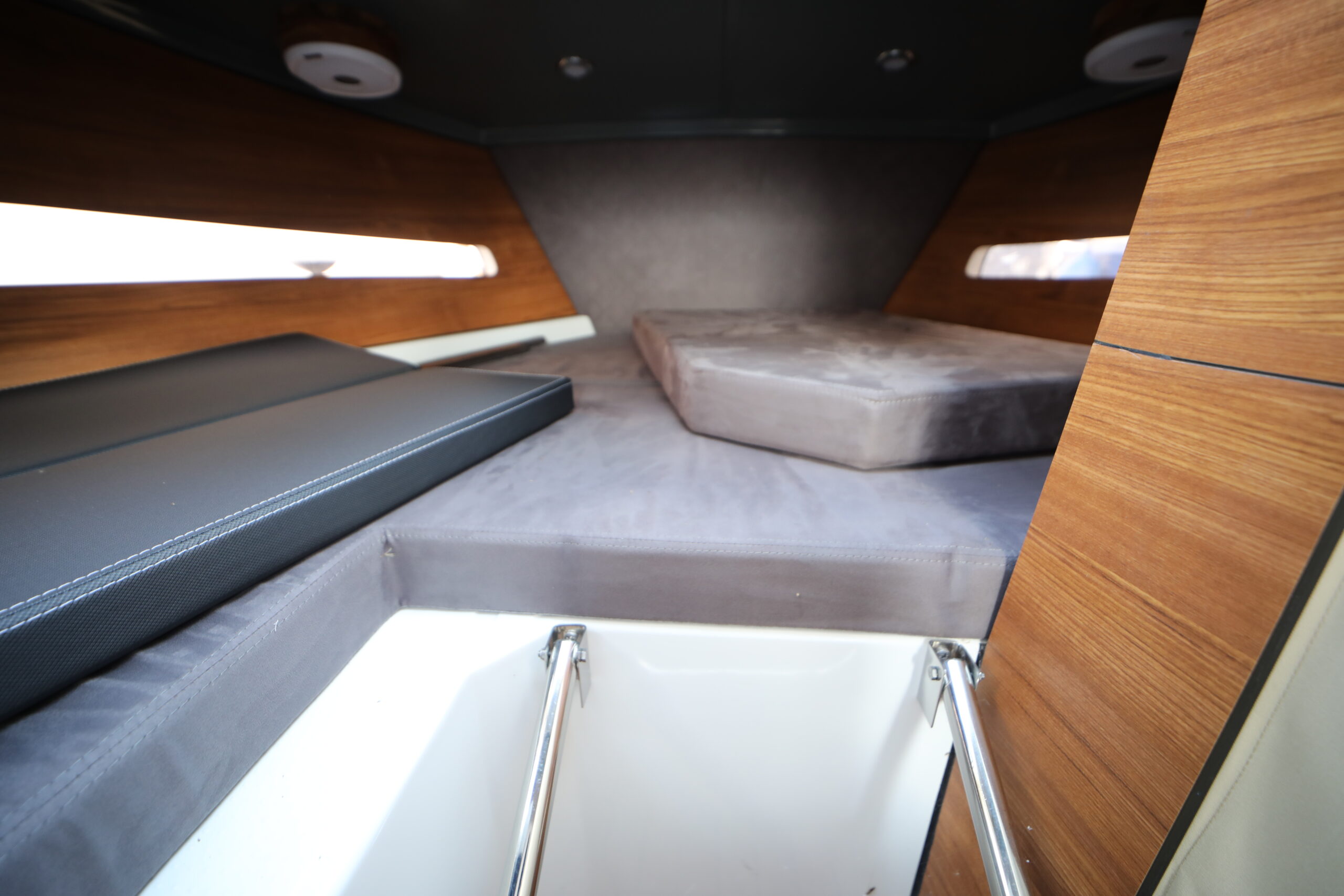 In terms of layout, this cruiser features a cabin with a double bed. However, it can accommodate up to 4 people, with the saloon converting into an additional sleeping area.