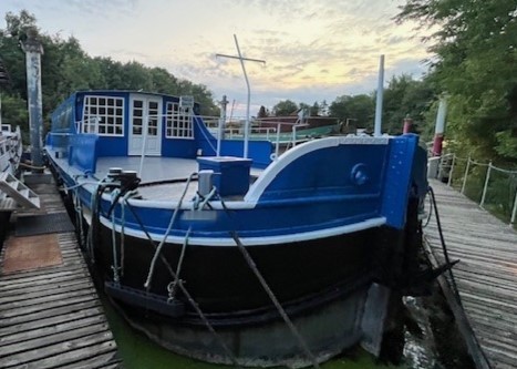 Aak barge appreciated for its beautiful line. Her shallow draught and air draft allows her to discover all the canals of Europe. The stern offers an elevated terrace. The wheelhouse with its panoramic view is very satisfying to steer. The living area is bright and offers a kitchen, a lounge, two double cabins and a bathroom. Contact us to arrange a visit!