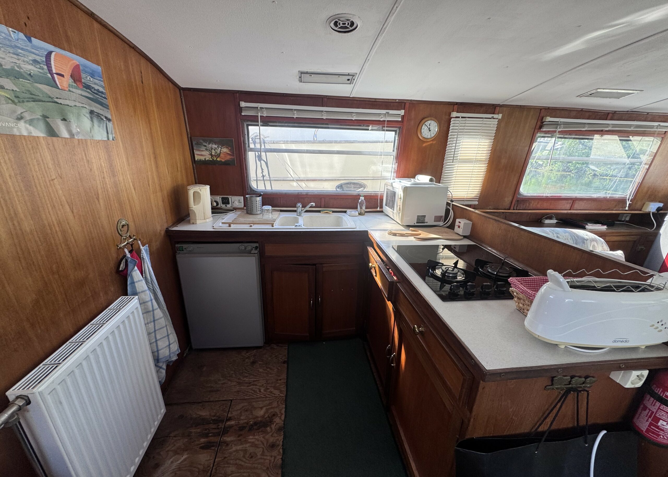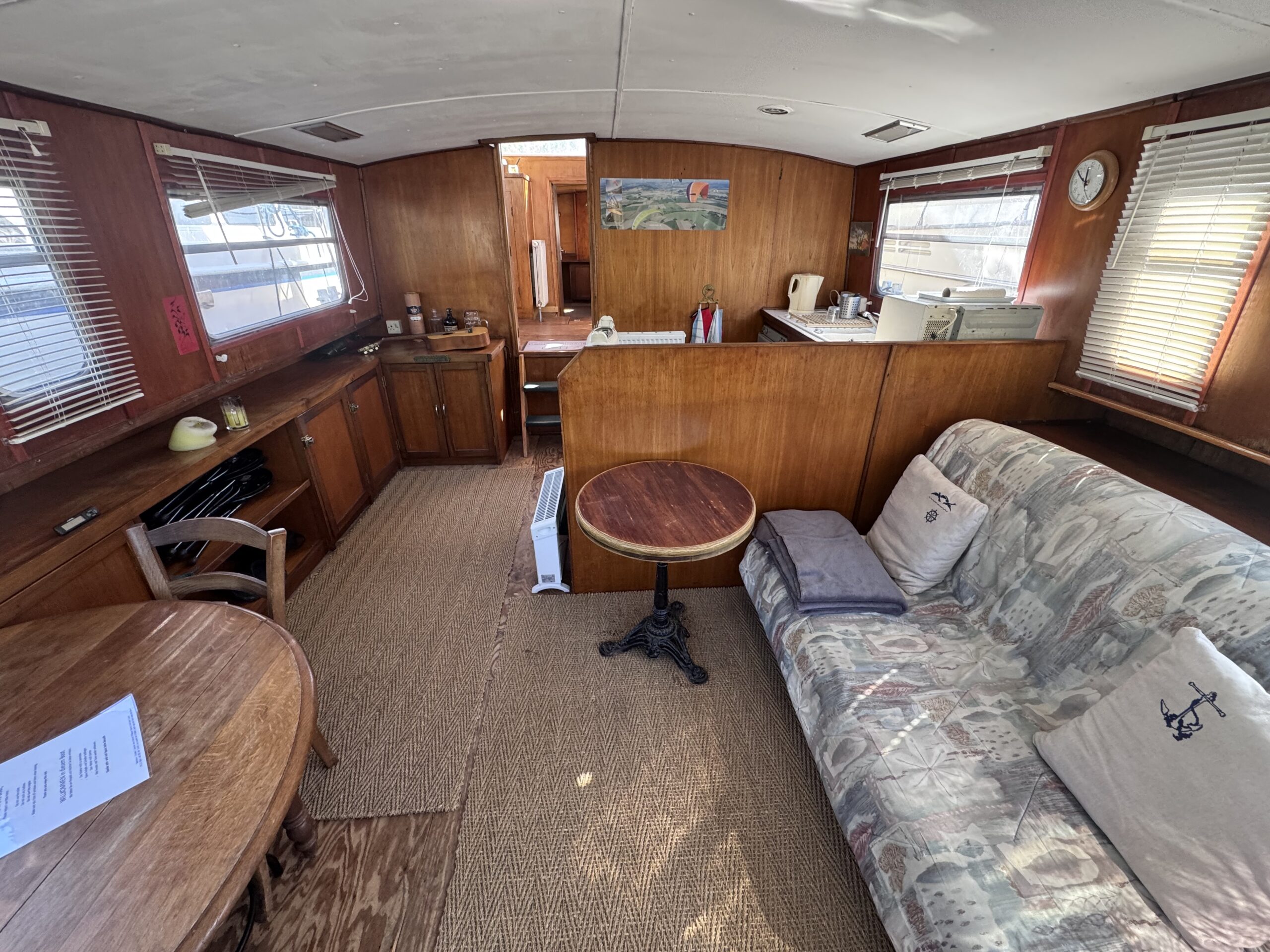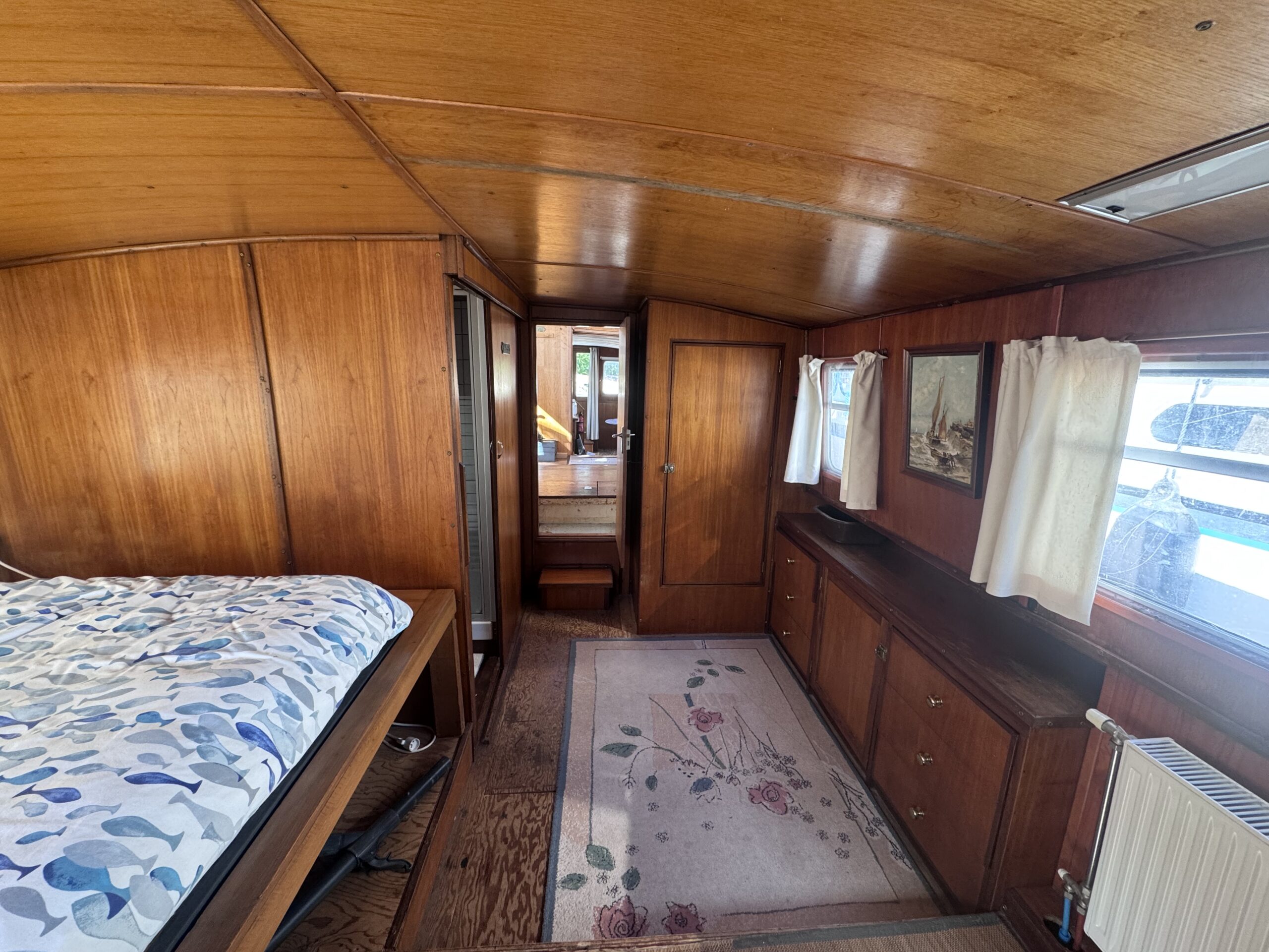 This Widebeam liveaboard barge is ready to sail and represents an excellent opportunity for a life-on-the-water project or fully independent cruising.
